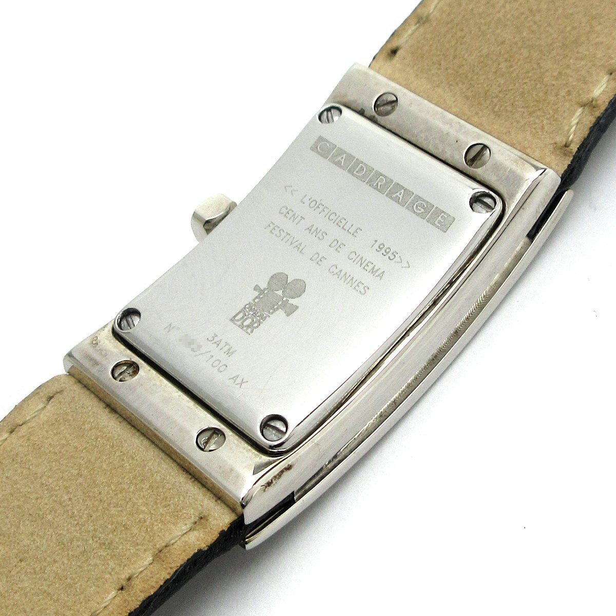 ■世界各国の映画祭の公式時計として使わているシネマウォッチ『ブリュマンレニエ(VUILLEMIN REGNIER)』。 ■「カドラージュ(CADRAGE)」はフランス語で映画や写真などの構図を決めるといった意味があり、時計の形状とも結びつきフランスでは「シネマ・ウォッチ」の愛称で呼ばれているモデル。 ■映画フィルムを思い起こす8個の四角い穴があいているのが特徴です。 ■ケースはSSにシルバーコーティングがされており品があります。 ■フランス映画の100年を記念して100本限定(裏蓋に刻印あり)で発売されました。 ■映画好きの方などのコレクションにもおすすめです。 ◎日常生活防水。 ---【商品状態】--- ☆外装、クリーニング済、微小なキズはありますがキレイです。 ☆バンド、微小な留めた跡はありますが全体的にはキレイです。 ※商品画像はお客様のモニター環境によっては色調が異なって見える場合がございますのでご了承ください。 |