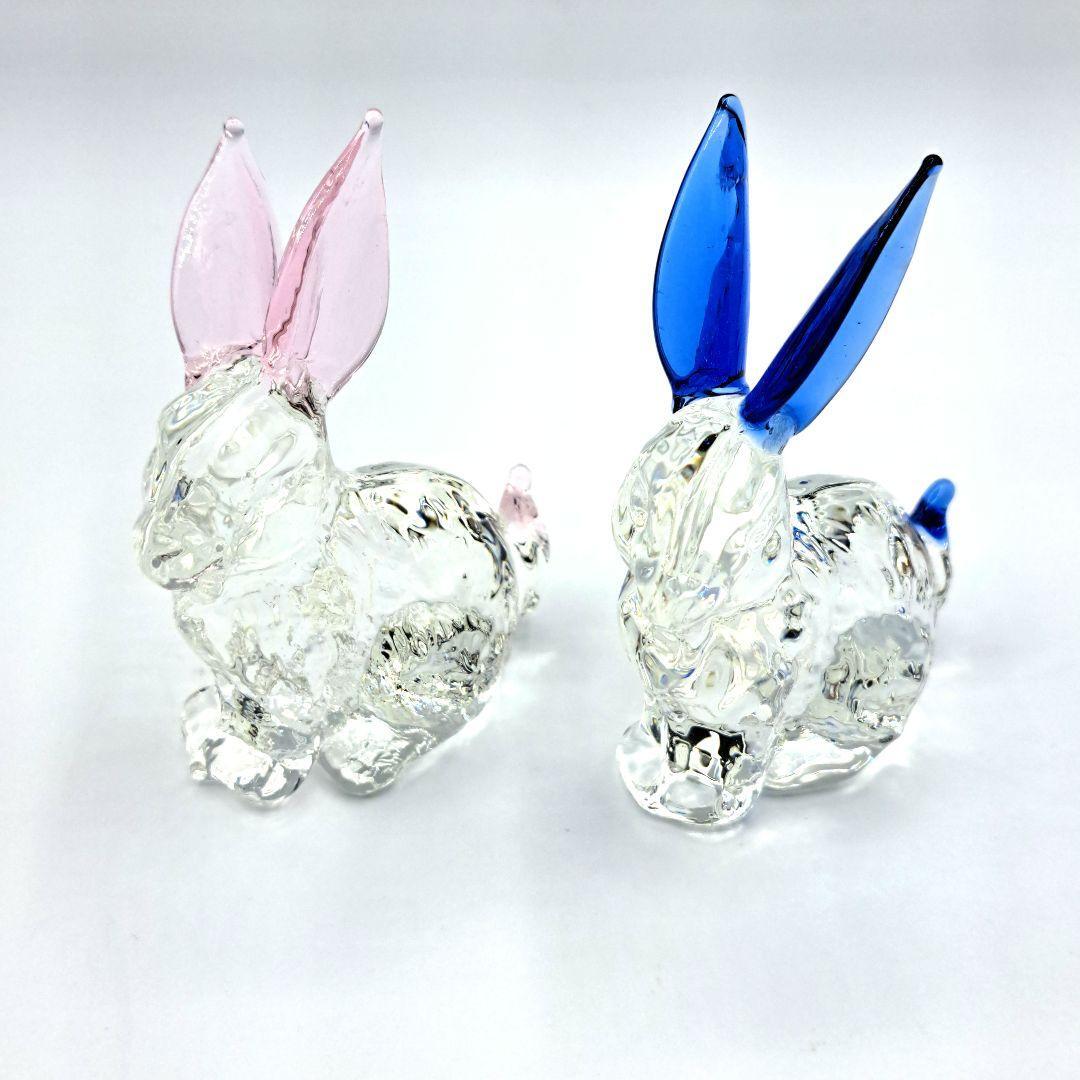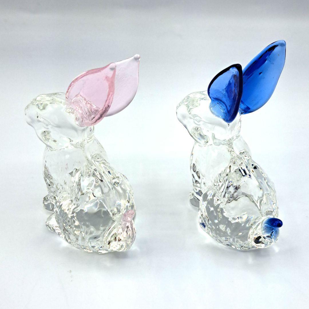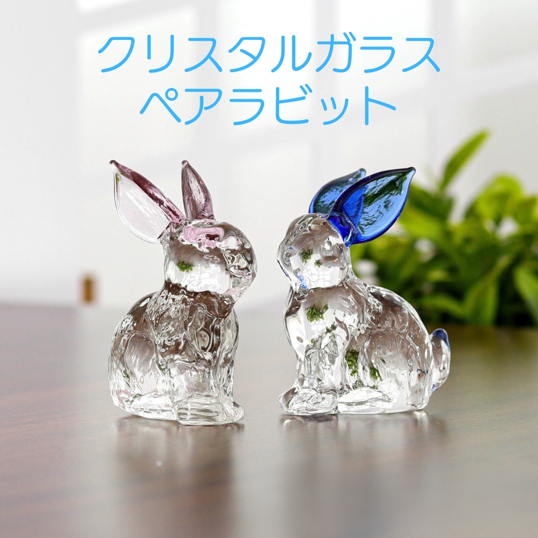 | クリスタル ガラス 細工 うさぎ ブルー ピンク ペア 夫婦 カップル 縁起物 インテリア ギフト 飾り物 開運 オブジェ 干支 招福 記念日 |