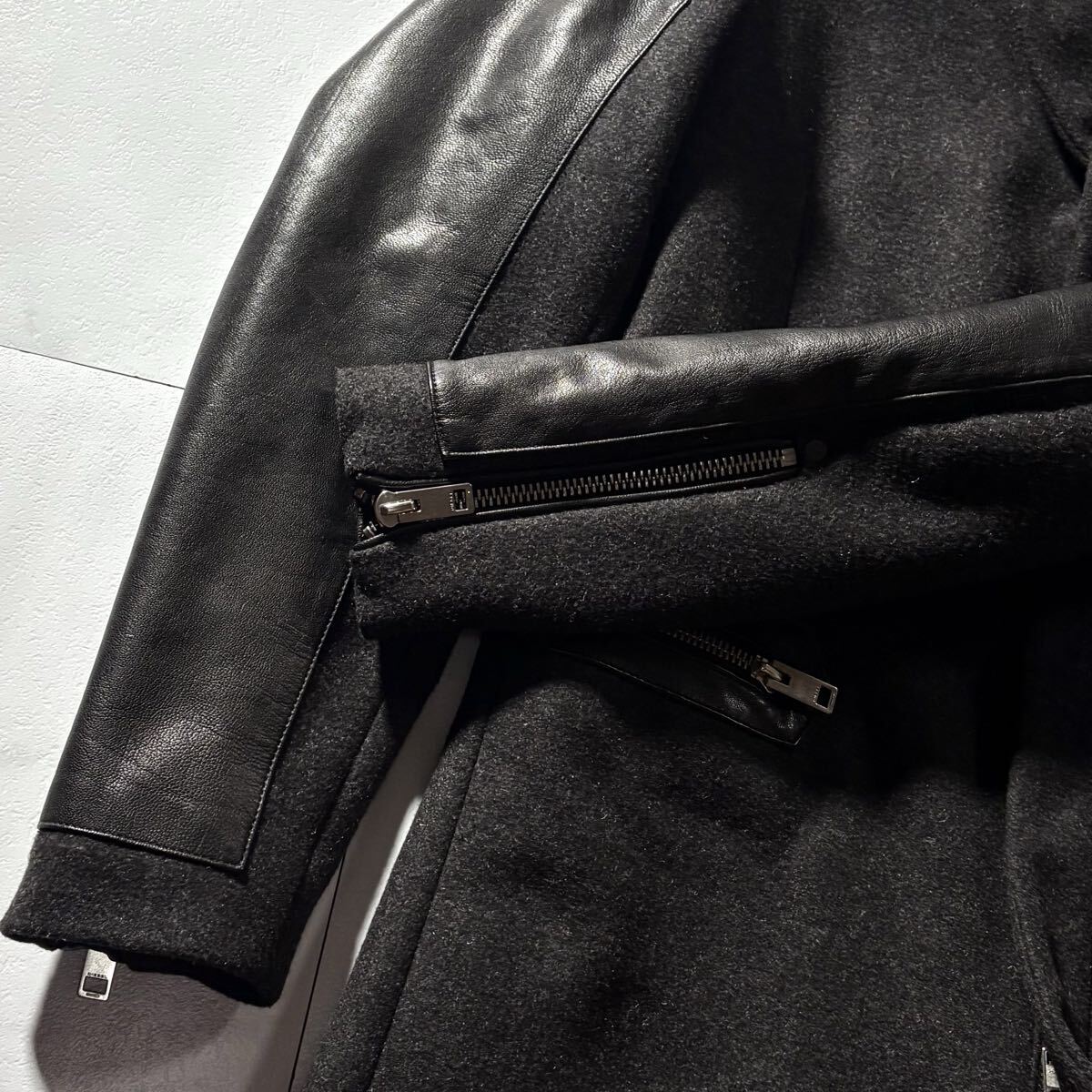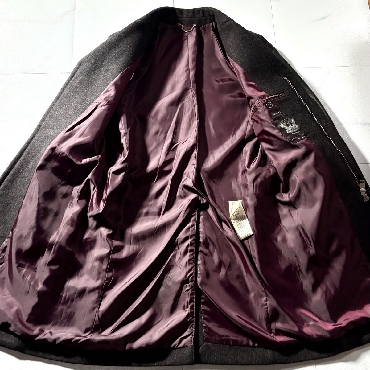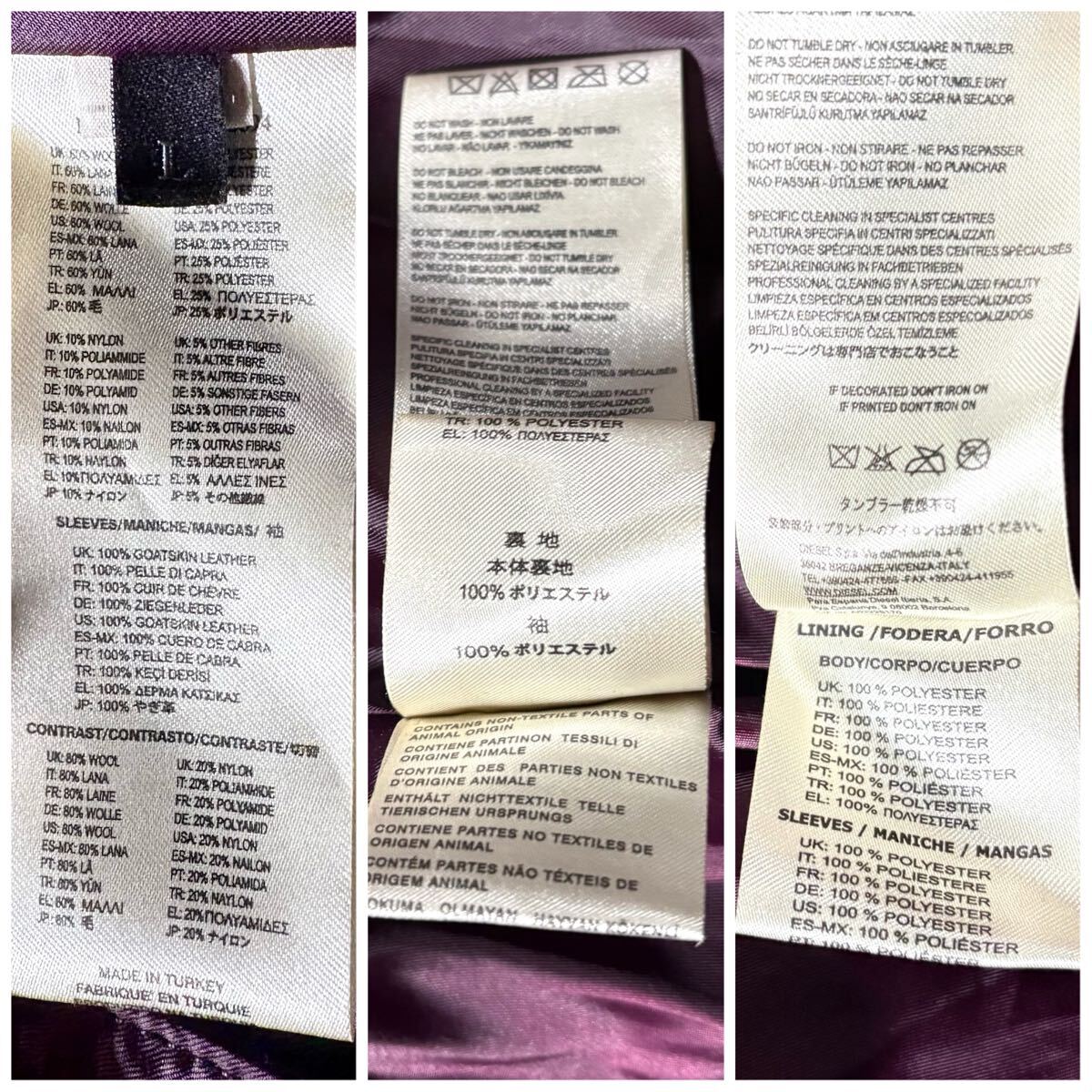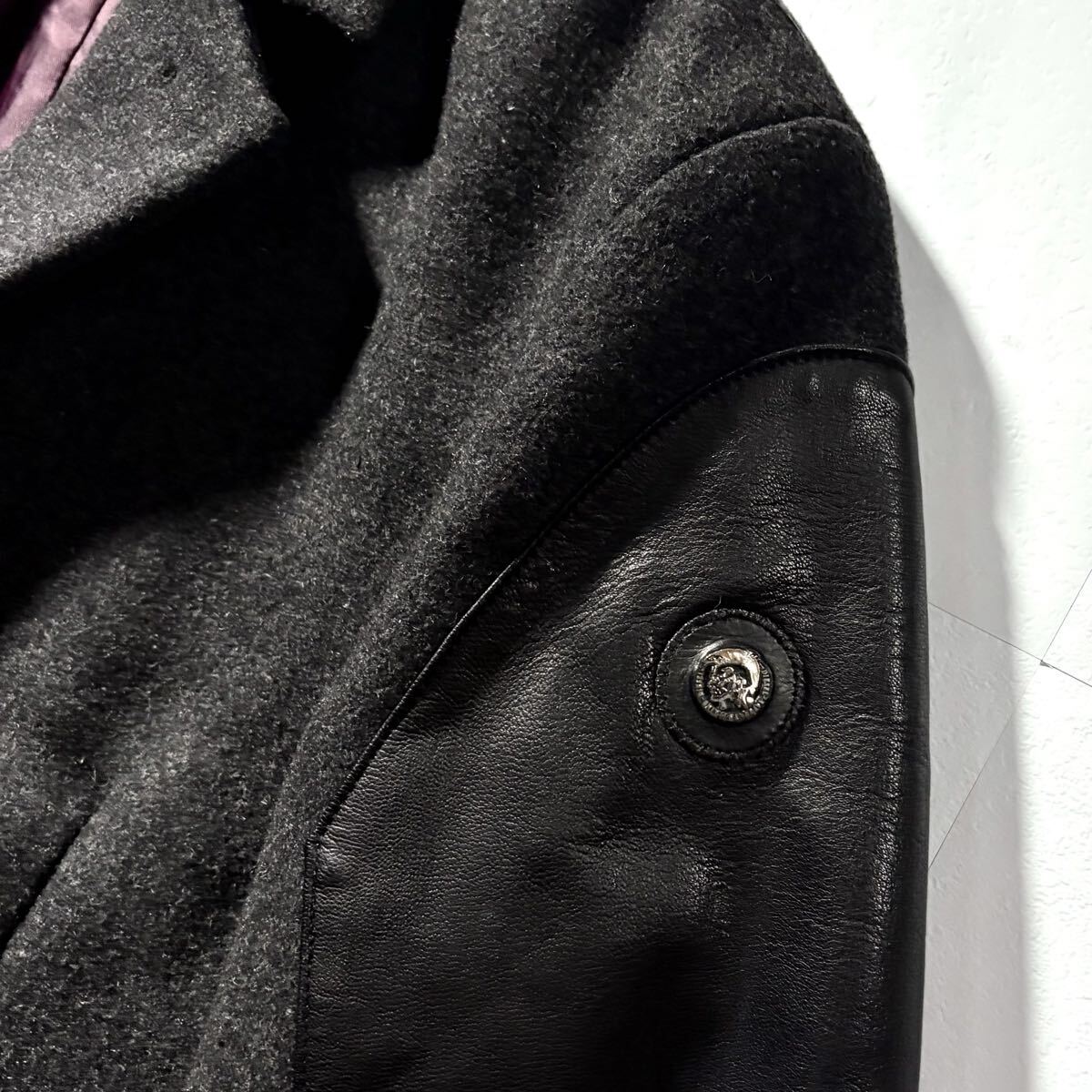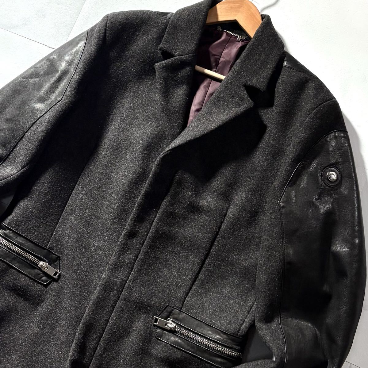 極美品/Lサイズ●DIESEL ディーゼル 山羊革切替 ゴートレザー袖 ウール系 ジップ チェスターコート ロング丈 裏地紫 パープル 肩ロゴ金具 [浏览原始页面]