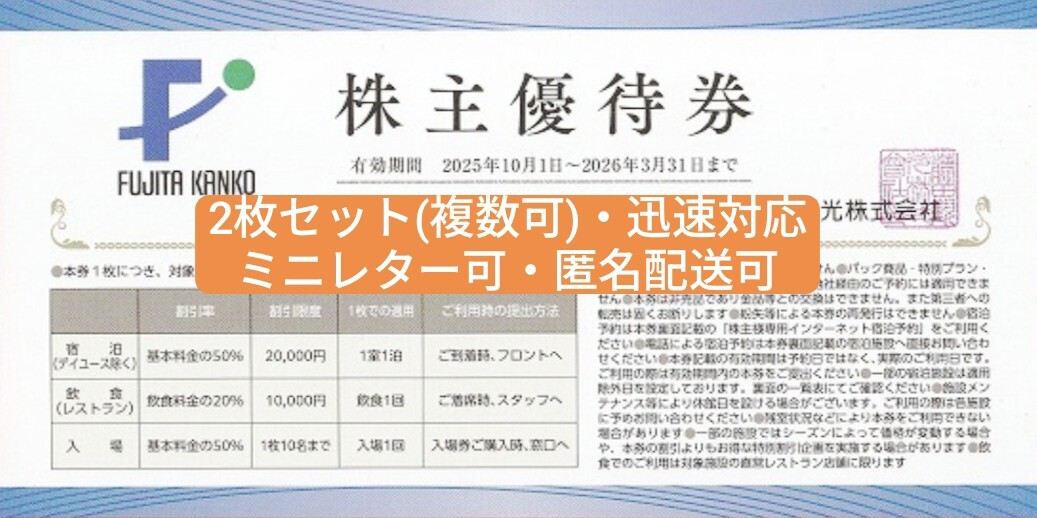 藤田観光 株主優待券 2枚セット| 出价者 | 信用 | 价格 | 时间 |