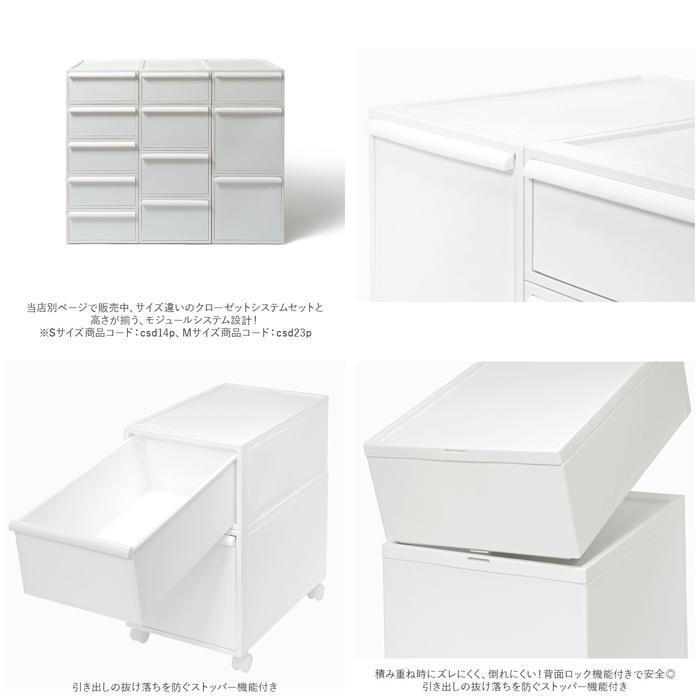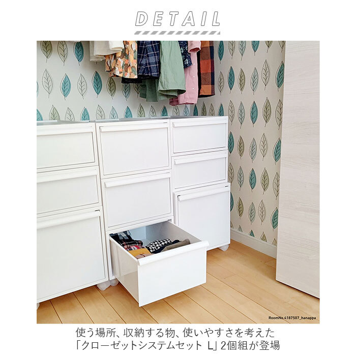 | 商品説明 | ・・使う場所、収納する物、使いやすさを考えた「クローゼットシステムセット L」2個組が登場。 ・幅広いニーズに応える、クローゼットシステム。出し入れしやすい引き出しタイプ。 ・全面フラット形状で使い勝手抜群。簡単にスタッキングOK! ・置く場所を選ばず使える、ツヤのないマットな質感。中身が見えることなく、生活感を隠せる不透明カラー。 ・折りたたんだ衣類などを収納しやすい内寸設計。 ・ニット、セーター、カーディガン、パーカー、トレーナー、ロングスカート、パンツなどの収納に便利なLサイズ。 ・下の段でも引き出しやすいよう、上部に取っ手を配置。必要以上にかがむ必要がなく、体への負担を軽減。 ・引き出しの抜け落ちを防ぐストッパー機能付き。 ・積み重ね時にズレにくく、倒れにくい!背面ロック機能付きで安全◎ ・枠には、変形を防ぐ頑丈な素材を使用。積み重ねたり、上に物を置いてもたわみにくいのがポイント。 ・当店別ページで販売中、サイズ違いのクローゼットシステムセットと高さが揃う、モジュールシステム設計!魅せる収納が簡単に実現。(※Sサイズ商品コード:csd14p、Mサイズ商品コード:csd23p) ・収納をよりスマートに。生活スタイルに合わせてカスタマイズ!安心の日本製。 |