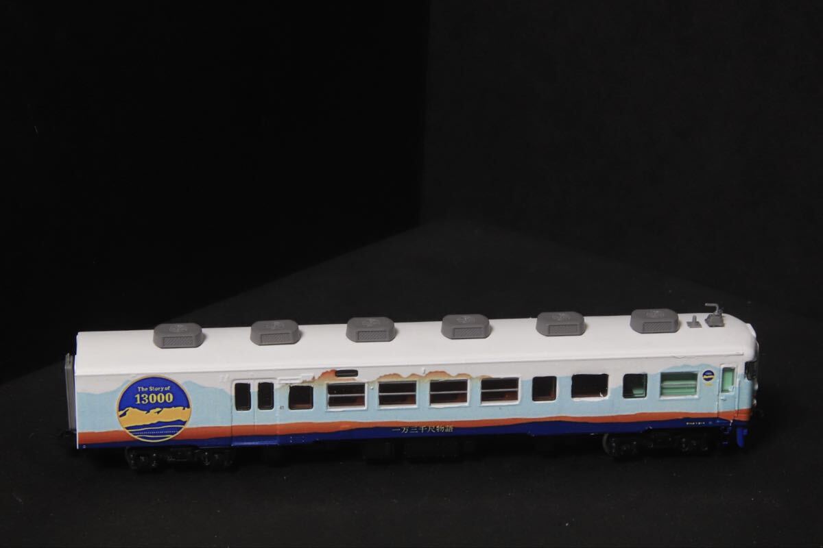 マイクロエース製413系をベースに、側面ドア・窓埋め、窓拡大、屋根加工、車体塗装を行い、ラッピングはデカールにて再現しております。