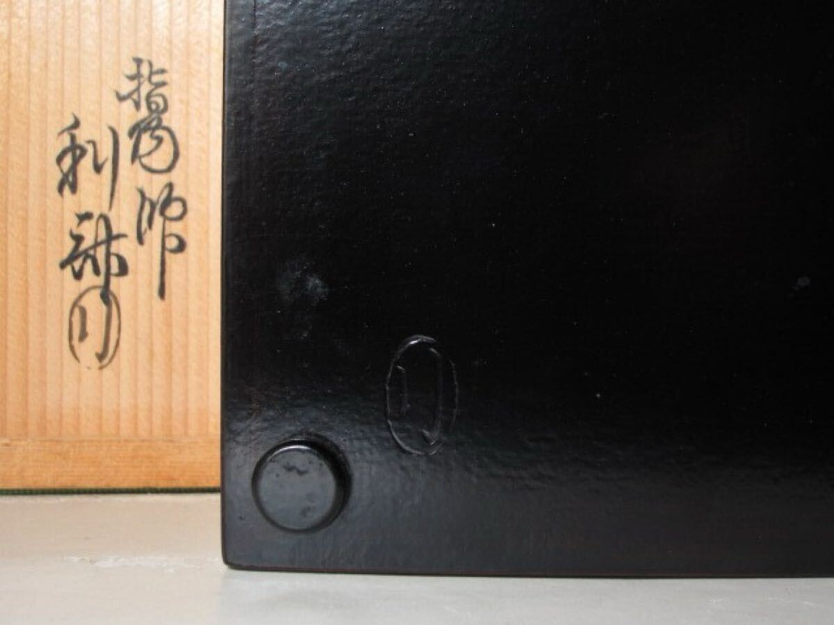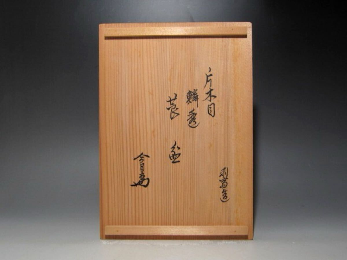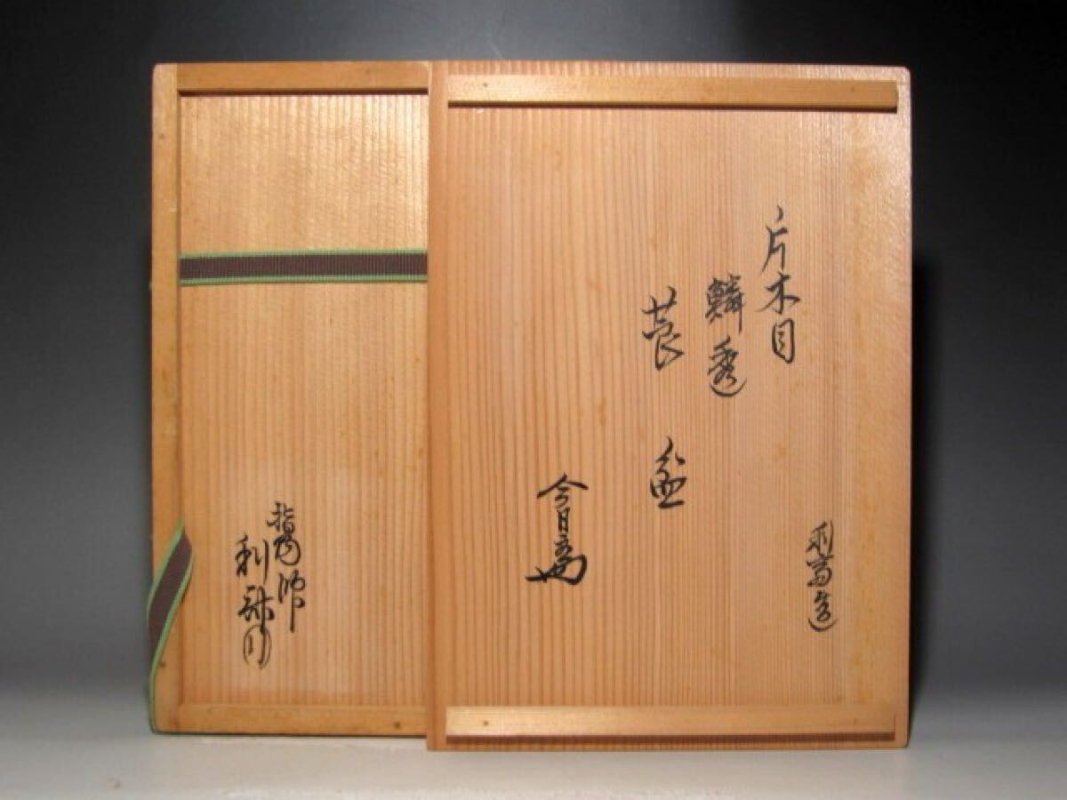 千家十職駒沢利斎作の片木目鱗透莨盆です。 上品で趣のあるお品です。 箱蓋裏に裏千家十四世淡々斎花押のある名品です。 【駒沢利斎(こまざわ りさい)】 千家十職の一つ。三千家御用達の棚や香合、炉縁などを製作する指物師が代々継承する名跡である。 当代は14代が1977年(昭和52年)に逝去後、長く空席が続いており、14代の甥の息子である吉田博三が後を嗣ぐべく修行中である。 サイズ 直径25.5cm/高さ10cm/奥行き17cm(多少の誤差はお許しください) 状態 一見して疵やヒビ・直しは見られません。 骨董品という事をご勘案頂き、時代経過のスレや、小さな傷がある場合があるかもしれませんのでご承知置きください。 | |||