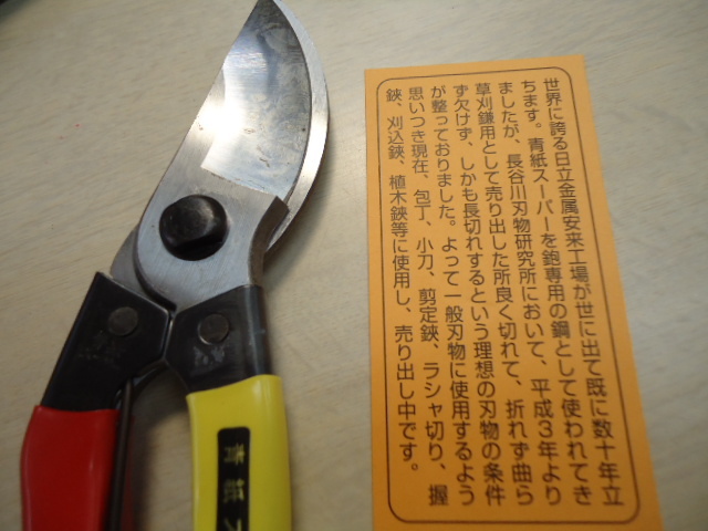 | ご面倒でも必ず注意事項等お読みの上、ご入札下さい。 入札・落札後のお申し出は承れません。 世界に誇る日立金属安来工場製{青紙スーパー鋼} 本職の方も好評使用中! 非常に堅いハガネです、無理にこねたりすると刃こぼれの原因になります。鋏類はネジを解かないで下さい、故障の原因になります サイズ 全長 200mm 重量 208g | |