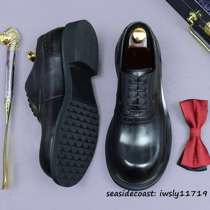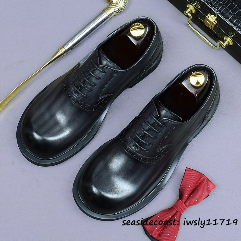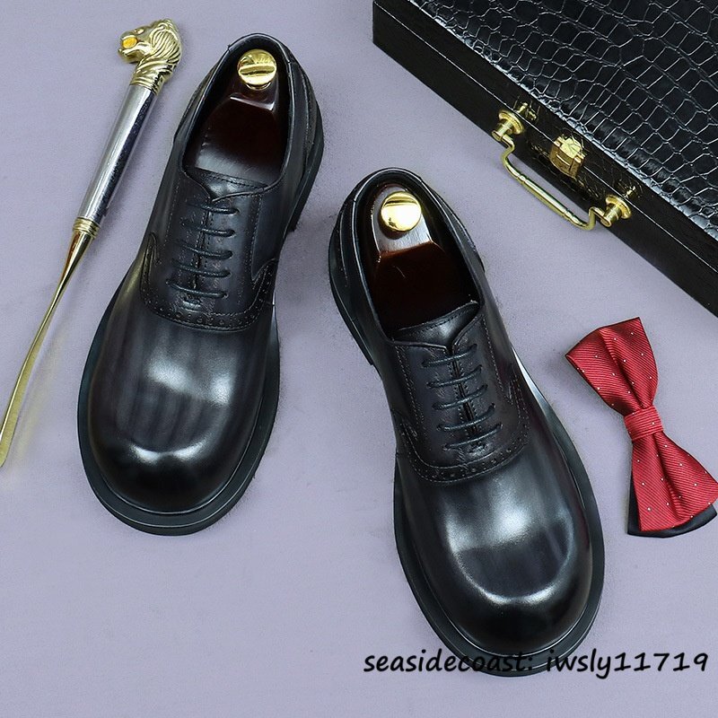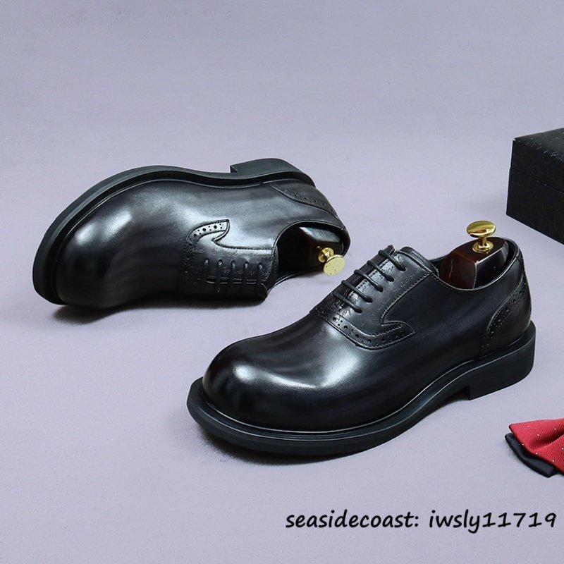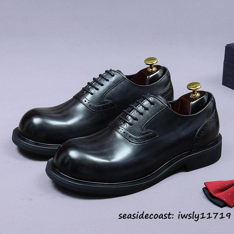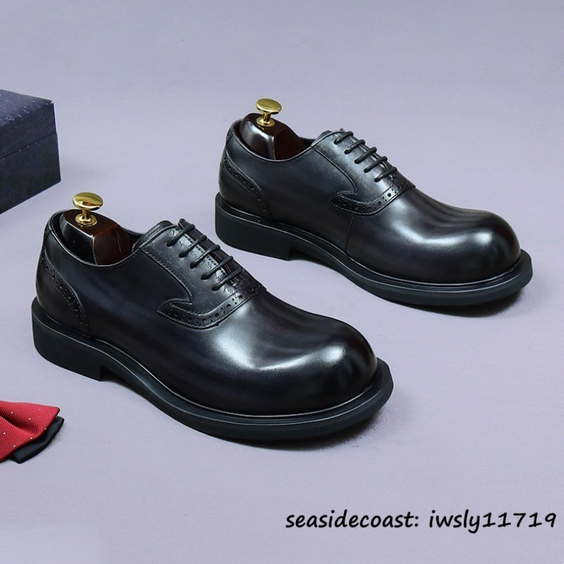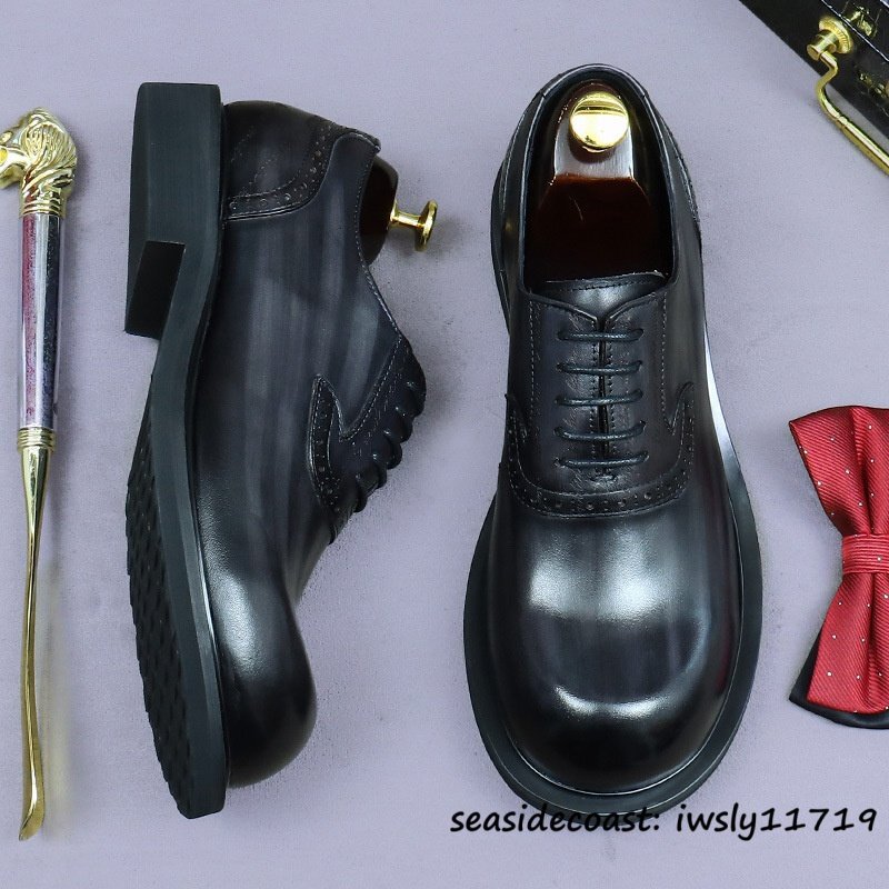 最上級◆定価10万 本革 ビジネスシューズ メンズ 本牛革 レザーシューズ 職人手作り 彫り 紳士靴 厚底 イギリス風 冠婚葬祭 グレー 26.5cm [浏览原始页面]