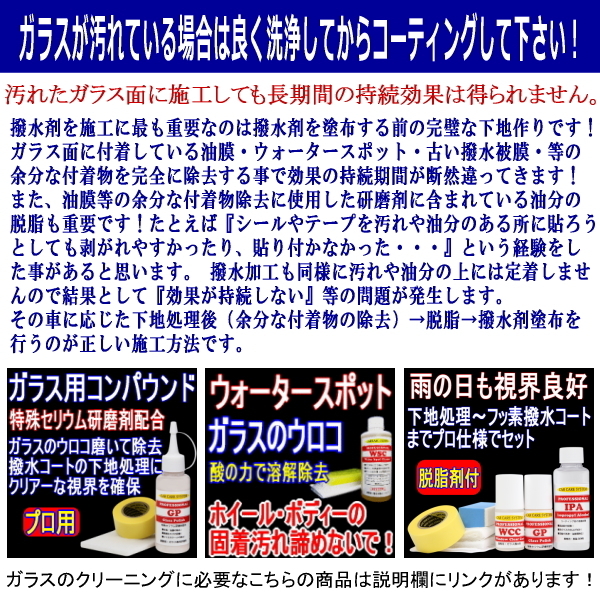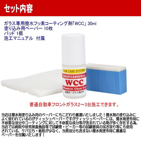 | プロ用 フッ素系 ウィンドガラス撥水コーティング剤「WCC」 | ||||||||||
