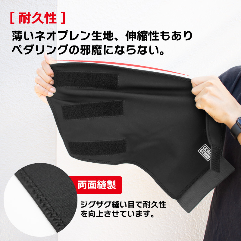 薄いネオプレン生地、伸縮性もありペダリングの邪魔にならない。