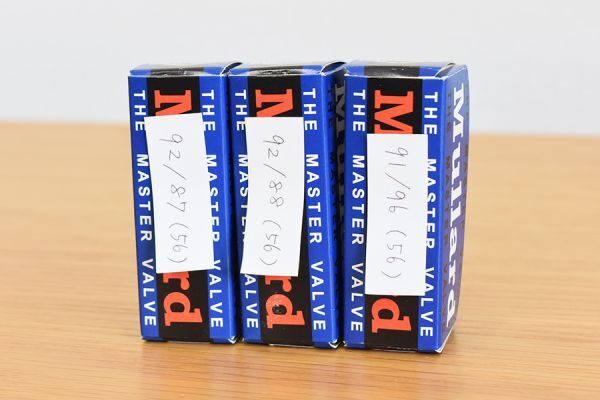 Mullard 12AU7/ECC82 ムラード / 真空管 3本 ■ 付属品 箱 ■ 動作 TV-7D/Uにて試験済みです。 92/87、92/88、91/96(破棄値56) ■ 外装 少しスレ傷や印字消えがあります。 | ||||||||||||||||||||||||