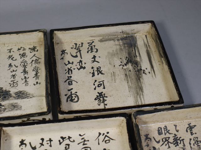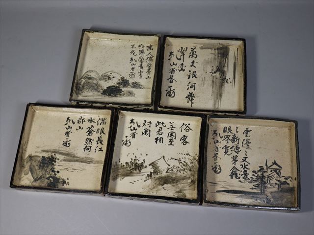 尾形乾山 銹絵絵替四方皿五客 琳派 向付 江戸期 茶懐石道具です。姿形共に美しく圧巻の出来栄えです。古作ですので経年のいたみはありますが全体的には状態良好です。