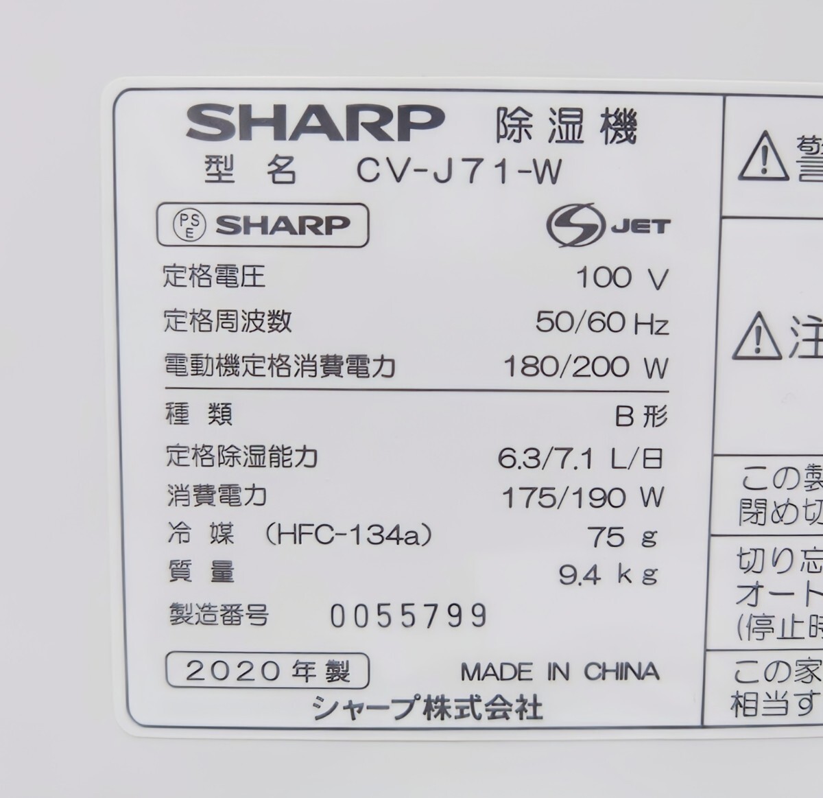 | 商品説明 | 【商品詳細】 SHARP シャープ 除湿器 CV-J71-w 美品 送料無料 カラー ホワイト タンク容量 2.5リットル 1日あたりの除湿量 6.3リットル 【商品状態】 外観は美品だと思います。 動作確認済です。 |
