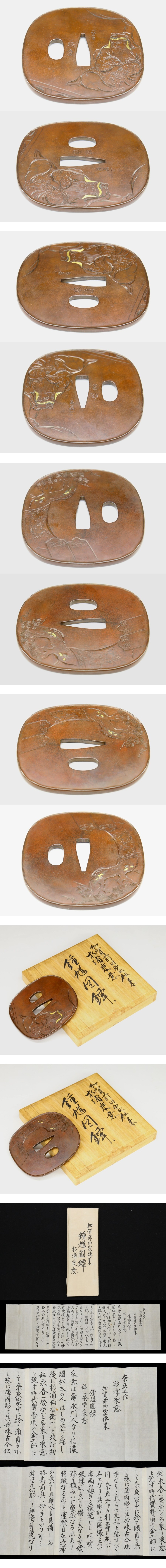 加賀前田家伝来 名品小道具 奈良三作の一人『鍾馗図鐔 一蚕堂乘意』伝来添状付属 江戸時代中期の名人 杉浦乗意の在銘優品 佐藤寒山箱書
