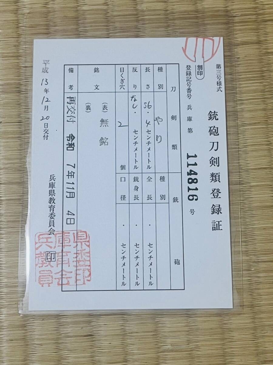 | 高級希少平三角槍【刃長56.4cm反り0.0cm槍全長約138.4cm】定価23万円【柳生の里より旧家蔵出し品】売切~登録証付やり |