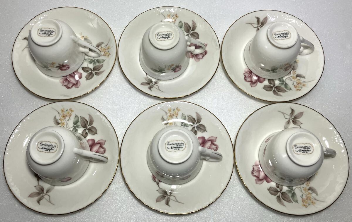 KGNY5883 未使用級 Noritake ノリタケ ティーカップ カップ ソーサー 花柄 洋食器 6客 Contemporary FINE CHINA 現状品