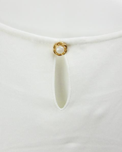 | 柔らかく肌触りの良いカットソー。フェミニンなデザインで、甘目スカートからキレイ目パンツまで幅広くコーディネートして頂けます。白なのであわせやすく、何枚あっても困りません。 |