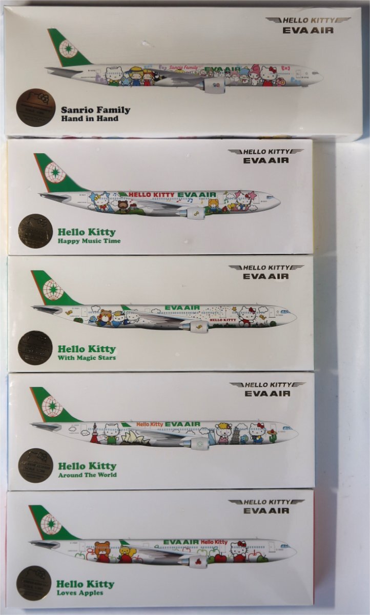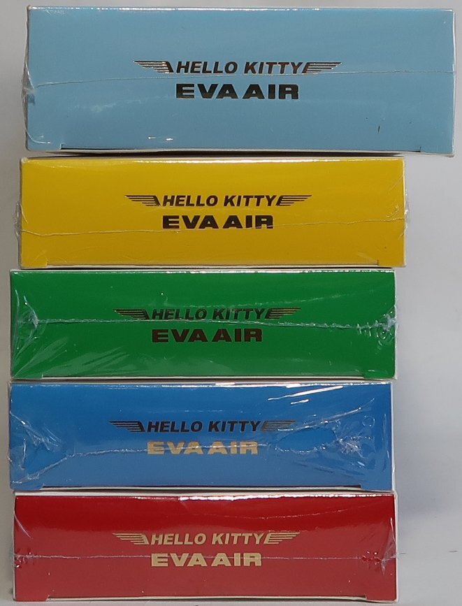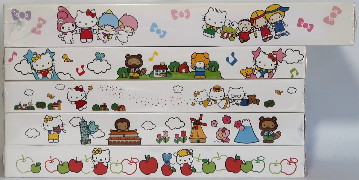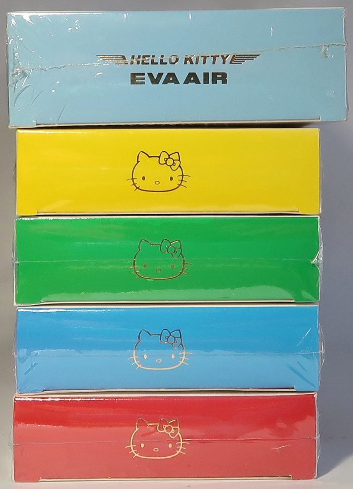 5個全て違う種類です。一個はサンリオファミリー仕様です。他のハローキティ仕様は各々デザインが違っているので元箱のデザインも違います。多分5個一緒に手に出品されるのはほぼないかと思われます。出品は画像の物のみです。箱は凹みがある箇所もあります。ブリスターパックが若干破れていたり小さな穴が空いている箇所があります。ひどい破れはないです。ブリスターパックで包まれているので箱蓋が開けられないような状態です。一切中の状態はわかりません。未開封状態なので問題ないかと思いますが、万が一破損やパーツの不足があってもノークレームです。お取引後はいかなる理由がありましても返品はできませんし、クレームはお受けできません。