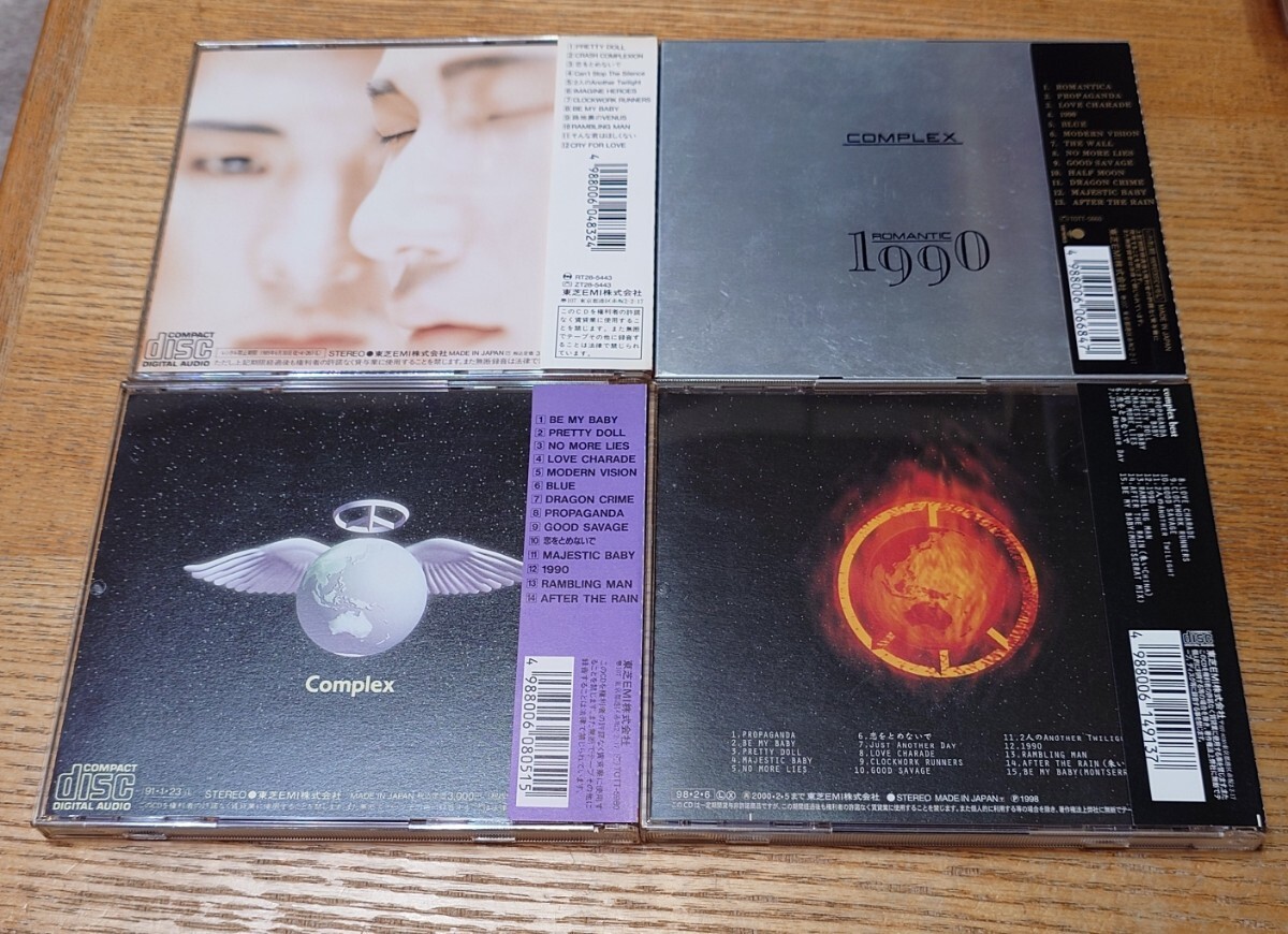 ●商品は吉川晃司と布袋寅泰のロックユニットCOMPLEXの旧規格CDアルバム4枚セット全帯付『コンプレックス』『ROMANTIC 1990』(初回アルミケース)『19901108』『BEST』です。| 出价者 | 信用 | 价格 | 时间 |