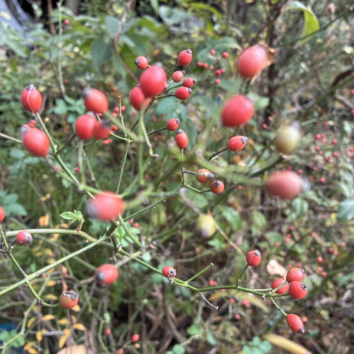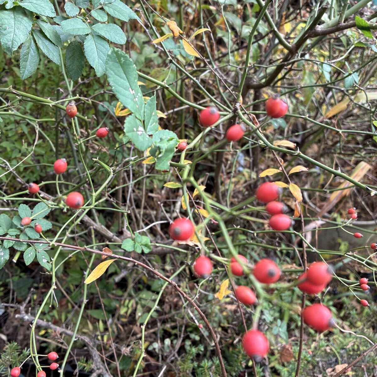 野薔薇の実が色付く季節です。クリスマスの飾り付けやリースにご利用いただけます。実は熟していますので種子としてもお使いいただけます。ネコボス発送で茎の長さは30センチ以内になります。