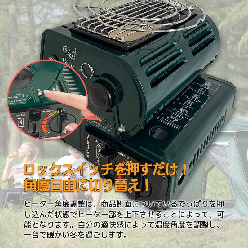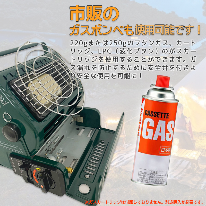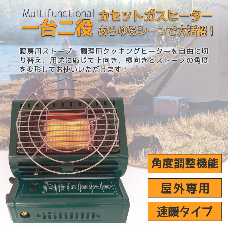 ◆商品詳細◆ 【日本語取扱説明書有り】 ・キャンプ、レジャー、ハイキング、旅行、ピクニックなどをはじめ、 いろんな場面でご使用いただけます。 ・暖房&コンロにもなりとても便利です。 ・コーヒーやお酒を温めたり炙り物をしたりして冬をゆっくり楽しむことができます。 ・燃料がカセットガスなので扱いも超楽です! 1.高品質のステンレス鋼製で、耐久性と耐食性があります。 2.多機能で自由に切り替えることができる加温モードと加熱モードがあります。 3.室外暖房用ヒーターとして使用でき、キャンプ中の調理にも使用できます。 4.安全弁は、ガスの流出を防止し、安心してご使用いただけます。 5.適度な幅の回転可能なハンドルで、手を傷つけたり、引っかいたりせず、持ち運び、持ち帰りに便利です。 6.カセットボンベ一本で約3時間持ちます。 ※注意事項 ●屋外用ヒーターです。 ●ご使用上の事故や損害について、当社は一切責任負いません。 ●※輸入品につき僅かなキズ・スレ・汚れなどがつく場合がございます。 ●湿気や酸素不足の際、特に最初には点火しにくくなることがあり、 何度か調整スイッチを点火させることで問題なくご使用いただけます。。