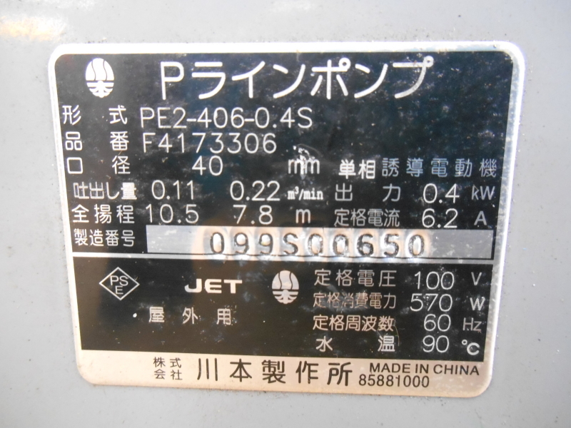 | 仕様 ●メーカー 川本製作所 ●型式 PE2-406-0.4S ●外形寸法 W260×D210×H310mm(本体のみ、突起物含む) ●電源 100V 60Hz ■川本製作所製、Pラインポンプを激安価格にて提供いたしますので、この機会に是非よろしくお願いいたします。 ■消耗部品、消耗品に関してはノークレーム、ノーリターンでよろしくお願いいたします。 ■当方専門業者ではありませんので、細かな動作まではわかりかねますので、細かな点でのクレーム等はお受けいたしかねますので、御了承下さい。 ■当方本商品に対して専門知識がありませんので、専門知識を要する質問、動作にはお答えいたしかねますので、ご了承の上宜しくお願いいたします。 ■動作確認、簡単な清掃も行っていますのでご検討宜しくお願い致します。 ■新品ではありませんので使用感や多少のキズ等あります。ご理解のうえ入札ください。コンディションに強いこだわりのある方はトラブルの原因となりますので、入札はお控え下さい。 ■TOP画像にあるものが全てです。※大きな商品や重い商品は、台車等に乗っていることや動作確認時に、当方所有の備品を使用して確認しますが、そちらは商品には含みませんのでご理解の程、お願い致します。 ■その他ご質問はお気軽にどうぞ。 | ||