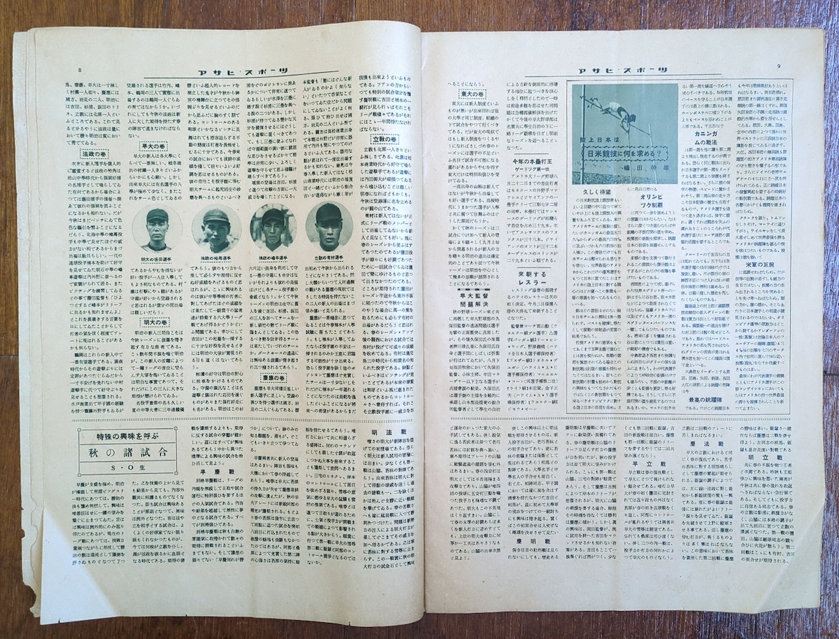 雑誌 戦前 アサヒスポーツ 六大学野球 ハーバード大学 日米野球 昭和9年 社会人野球 資料(検 高校野球 ベーブルース ルー・ゲーリッグ