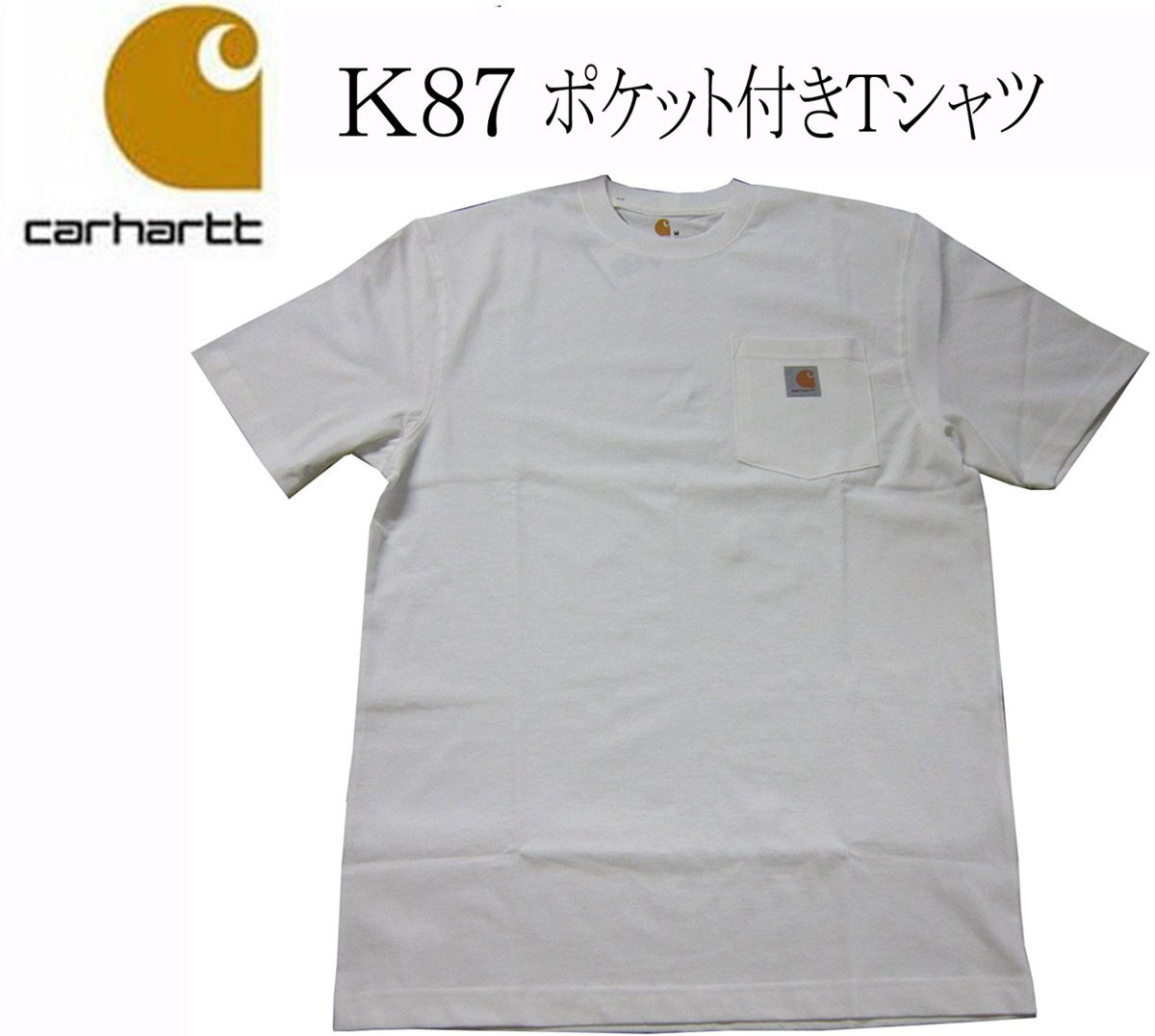 carhartt(カーハート)K87 ポケット付 半袖 Tシャツ シロ(XL)です。 ■サイズ(約) 肩幅約55cm、身幅約67cm、着丈約79cm ■素材 コットン100% ■特徴 サイズ的には大き目のサイズとなっていますので、ご注文の際には必ずサイズをご確認願います。 左胸にはロゴパッチ付のポケットがあり機能的でシンプルなデザイン。 | ||||||