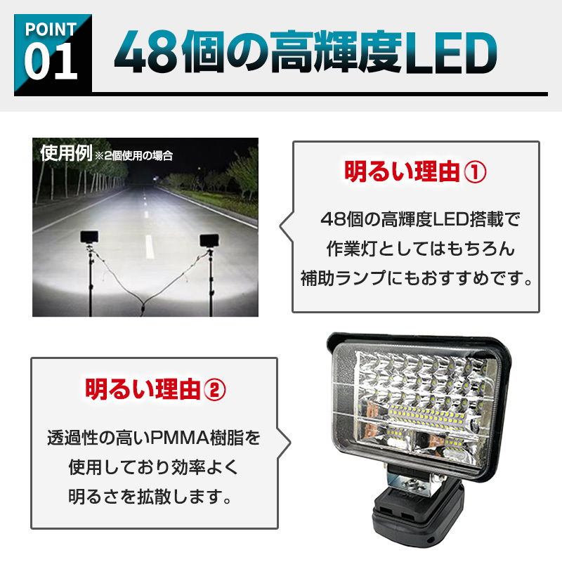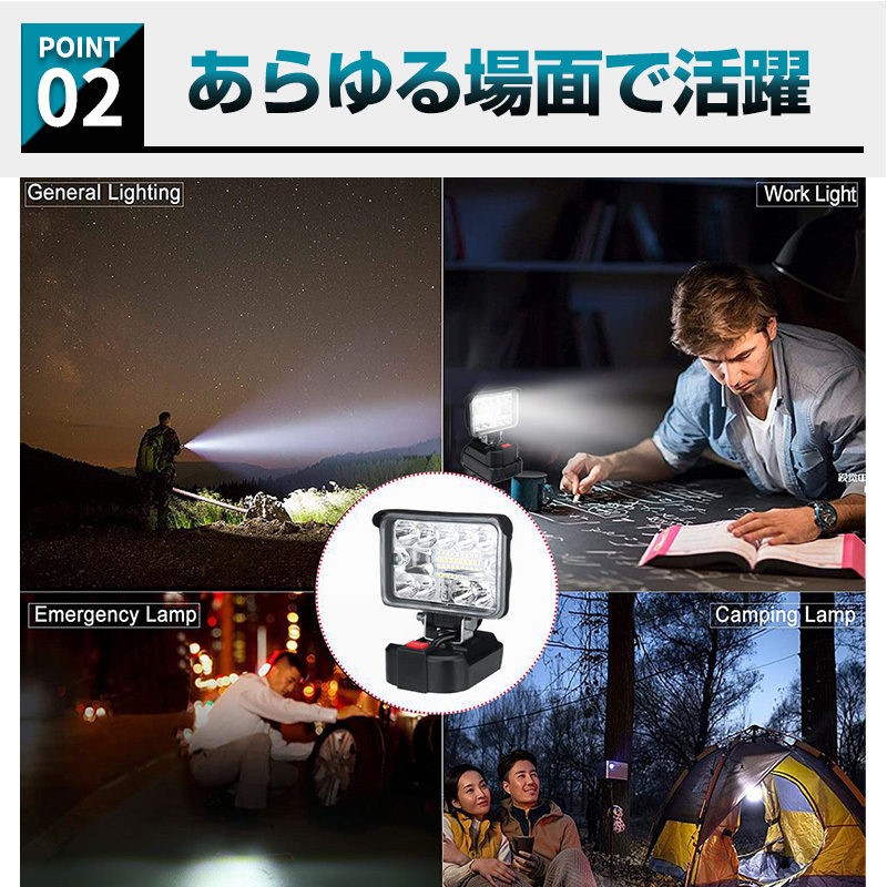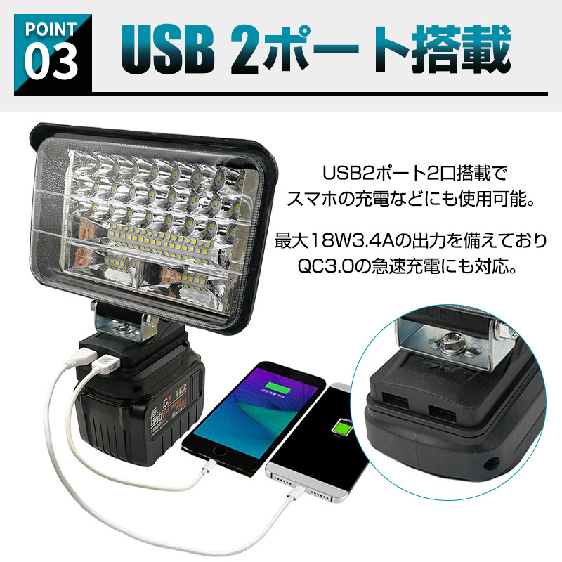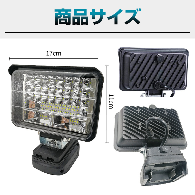 | LED ワークライト マキタバッテリー makita 投光器 USB充電 互換品 144W 18V 14.4V 5インチ 7200LM 作業灯 集魚灯 防災 照明 ランプ |