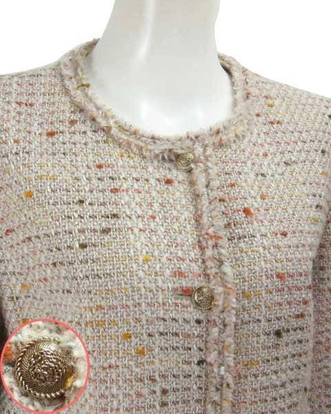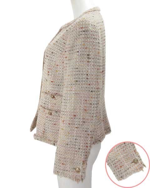 | 上品できちんと感のあるツィードジャケット。優しいお色使いで、ボトムスのお色を選ばず、お使い頂けます。きちんと感のあるスタイル、甘目スタイルなどいかがでしょうか? |