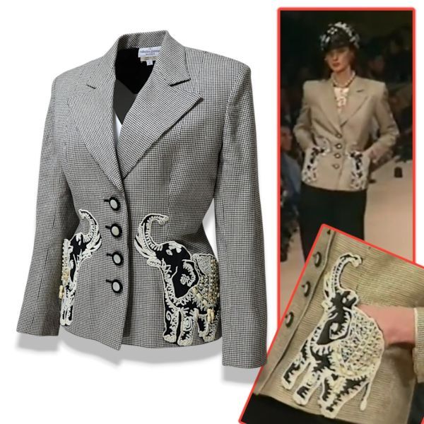 | 良品 ◆超レア◆ 正規品 Vintage VALENTINO ヴァレンティノ エレファント ハウンドトゥース ジャケット イタリア製 | ||||