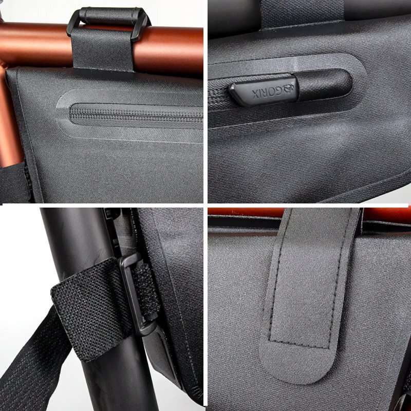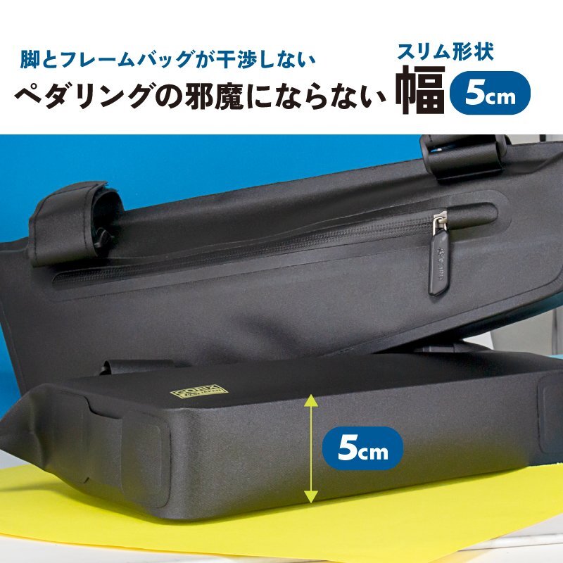 優れた防水性を持ち汚れや摩擦に強いとても頑丈なフレームバッグです。 生地には分厚く強度の高い生地を使用しシームレス一体式製法でさらに強力に。 水だけでなく汚れにも強いのが特徴です。 容量はLサイズで2Lでポーチや750mlのボトル、スマホなど収納できる十分なサイズです。 フレームの空きスペースを有効活用しバッグを装着する事で収納箇所を拡大。 シンプルでカジュアルなアウトドアデザインなのでどんなフレームにもぴったり。 SサイズとLサイズ、2タイプのサイズをご用意しています。 ロードバイクやクロスバイク、マウンテンバイクなどのフレームに取付けできる自転車用フレームバッグ。 ツーリングや長距離のロングライド、自転車旅、自転車通勤など様々なシーンで大活躍! [高防水] 防水性に優れた生地と縫い目のないシームレス一体式製法を採用し防水性を高めています。 表面に防水TPUコーティングとジッパーには防水性ファスナーを採用し防水性をさらに強化。 フレームバッグに付いた汚れも落としやすくなっています。 [強度が高い] 生地にはリュックの底部に使われる事が多い程に分厚く強度がある600Dナイロンを使用し強度を高めています。 擦れや摩擦にも強く破れたりするのを防止します。 [容量] 最大容量2LとSサイズが1.6L。水筒やチューブや鍵、工具や軍手、ポーチ、カメラ、薄手のウィンドブレーカーなどを収納。 大きく開く事で取出しがしやすくまた中身も確認しやすい! [ベルト穴] 自転車の装着に合わせて固定場所を変更できるベルト穴。 ベルクロなのでスムーズに取付け作業ができる。 商品内容フレームバッグ 生地分厚い600D ナイロン、表面防水TPUコーチング加工 (S)サイズ長さ26/30(下/上)cm, 高さ最大13cm, 幅5cm (L)サイズ長さ32/35(下/上)cm, 高さ最大13cm, 幅5cm 容量(S)1.6L / (L)2L 重量(S)180g / (L)200g | |