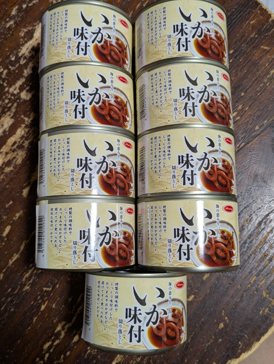 いか味付切り落とし缶詰150gが9缶となります。賞味期限は写真のとおりです。| 出价者 | 信用 | 价格 | 时间 |