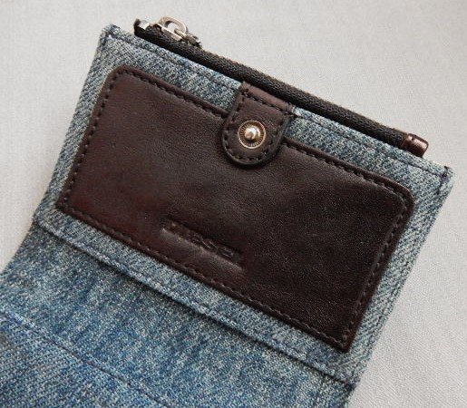 レザーとデニムの調和感のデザインがお洒落です、 コンパクトで今のキャッシュレス時代のコインカードケースです。