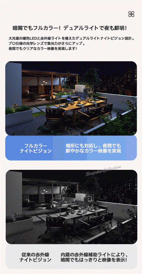アクティブディフェンス × 光と音で威嚇!動きを検知して即座に警報通知!