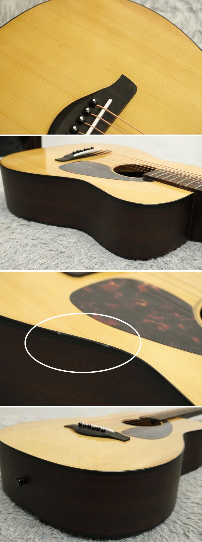 | 商品名/状態 | ●送料無料《北海道・沖縄・離島除く》● 中古美品 調整済 YAMAHA ヤマハアコースティックギターFG-Junior JR2 アコギミニギターケース付属〔ER-2914〕 ヤマハFG-Junior JR2 ミニアコースティックギターの出品です。 FGシリーズの伝統的なサウンドを、 コンパクトなボディサイズに凝縮した人気モデルです。 お子様用・女性の方・旅行用ギターとしてはもちろん、 サブギターとしても非常に扱いやすい一本です。 ミニサイズながら音量・音のバランスが良く、 ストロークでもフィンガーピッキングでも楽しめます。 ヤマハらしい安定した作りで、 初心者の方にも安心しておすすめできます。 2023年に購入され、ほとんど使用されておらず 一部打痕はございますが(画像参照)綺麗な状態です。 新しい弦に交換して調整済です。 すぐに演奏をお楽しみいただける状態です。 弦高は12フレット上で6弦側 約2.1mm 1弦側約1.5mmです。 重さ約1.3Kg 純正のギグバッグ、説明書、期限切れの保証書が付属します。 *-*-*-*-*-*-*-*-*-*-*-*-*-*-*-*-*-*-*-*-*-* 《製品仕様》 ・メーカー:YAMAHA(ヤマハ) ・モデル:FG-Junior JR2 ・タイプ:ミニアコースティックギター ・トップ:スプルース ・バック&サイド:マホガニー系(Mersawa) ・ネック:ナトー ・指板:ローズウッド ・ブリッジ:ローズウッド ・スケール長:約540mm ・ナット幅:約43mm ・ボディフィニッシュ:ナチュラル *-*-*-*-*-*-*-*-*-*-*-*-*-*-*-*-*-*-*-*-*-* ※現状品、中古楽器にご理解あられる方のみご検討・ご入札下さい。 ノー クレーム・ノーリターンにてお願い致します。 |