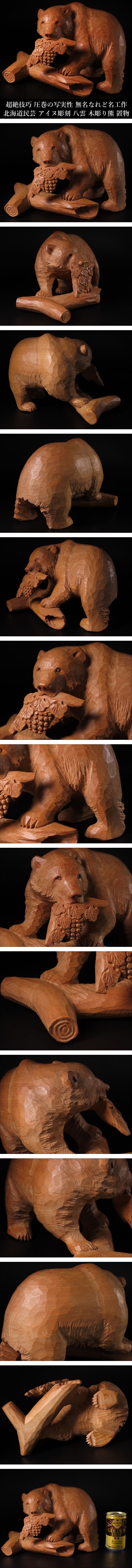 【ONE'S】超絶技巧 圧巻の写実性 無名なれど名工作 北海道民芸 アイヌ彫刻 八雲 木彫り熊 幅25cm 置物 古美術品 | |||