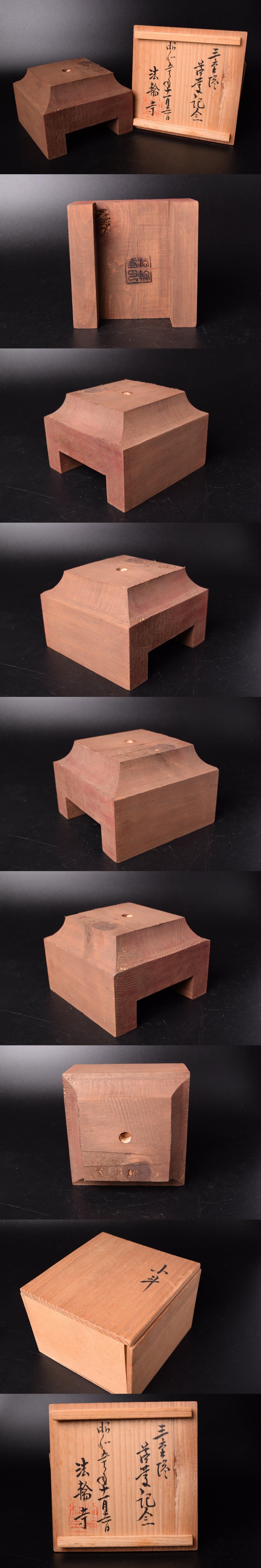 | 商品説明 | 奈良・法輪寺三重塔再興の際に製作された記念の小斗です。 昭和戦時中に落雷で焼失した旧塔は、かつて国宝指定を受けていたことで知られています。 材はヒノキ。古材ではありませんが、塔と同種材が用いられたとされ、 経年による擦れ・汚れ等あります。 *説明文の下にも画像がありますのでご覧ください。 サイズ 径:約13X13cm 高さ:約9cm |