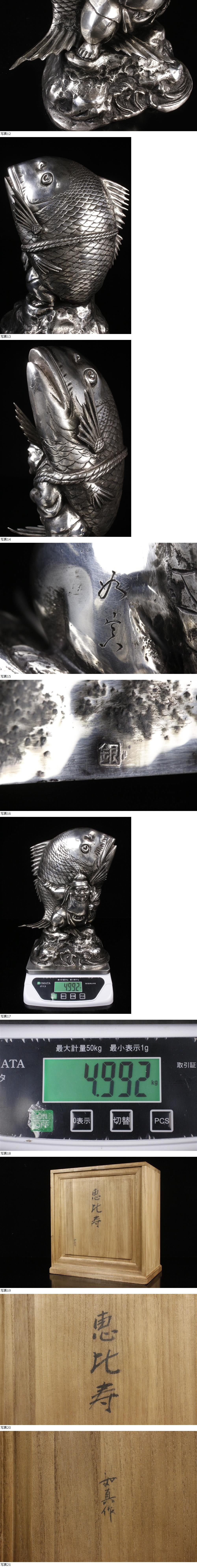 26012307* * * 商品詳細 * * * ここでしか出逢うことのできない唯一の美をご紹介させて頂きます。 大きな鯛を背負った躍動的な姿で表現された恵比寿像のご紹介です。 造りはとても細密で、鯛の硬い鱗や鋭い背びれまで丁寧に表現されています。 恵比寿の表情も豊かで、肌の張りまでリアルに造りこまれています。 目鼻ははっきりとしており、その影が一層立体感を持たせ 実在しているという錯覚を持たせるほどの臨場感があります。 隅々まで精巧に造りこまれた立体作品としても縁起物としても素晴らしい逸品です。 この機会に是非お手元にてご堪能下さい。 ■商品内容/置物、箱 ■サイズ/横23cm×高33cm×奥行16㎝ 重量4.992kg 箱:横36.5cm×高38cm×奥行21.5㎝ ■状態/スレ、小キズ、変色、箱にスレ、キズ、シミ、潰れがございます。 ※写真にてご確認、ご了承の上ご入札下さい。 銀刻印がありますが銀の成分を保証するものではありません。 ご理解の上ご入札ください。 * * * 支払詳細 * * * !かんたん決済 * * * 発送詳細 * * * 入金確認後3営業日以内に発送致します。 ※直接引き取りも可能です。 60~160サイズにつきましては 佐川急便、ゆうパックのどちらかで発送いたします。 ゆうパック発送の場合、弊社の発送日から追跡サービスに問合せ番号が反映されるまで 約1日ほどお時間がかかりますのでご了承下さい。 * * * 注意事項 * * * 運送中の破損があった場合は速やかに当社までご連絡下さい。 保険を利用するのに受取連絡後に運送会社による現場での破損状況確認が必要となります。 勝手に返送されますと保険の適用外となりますのでご注意ください。 * * * * * * お問い合わせ:082-236-8669 |