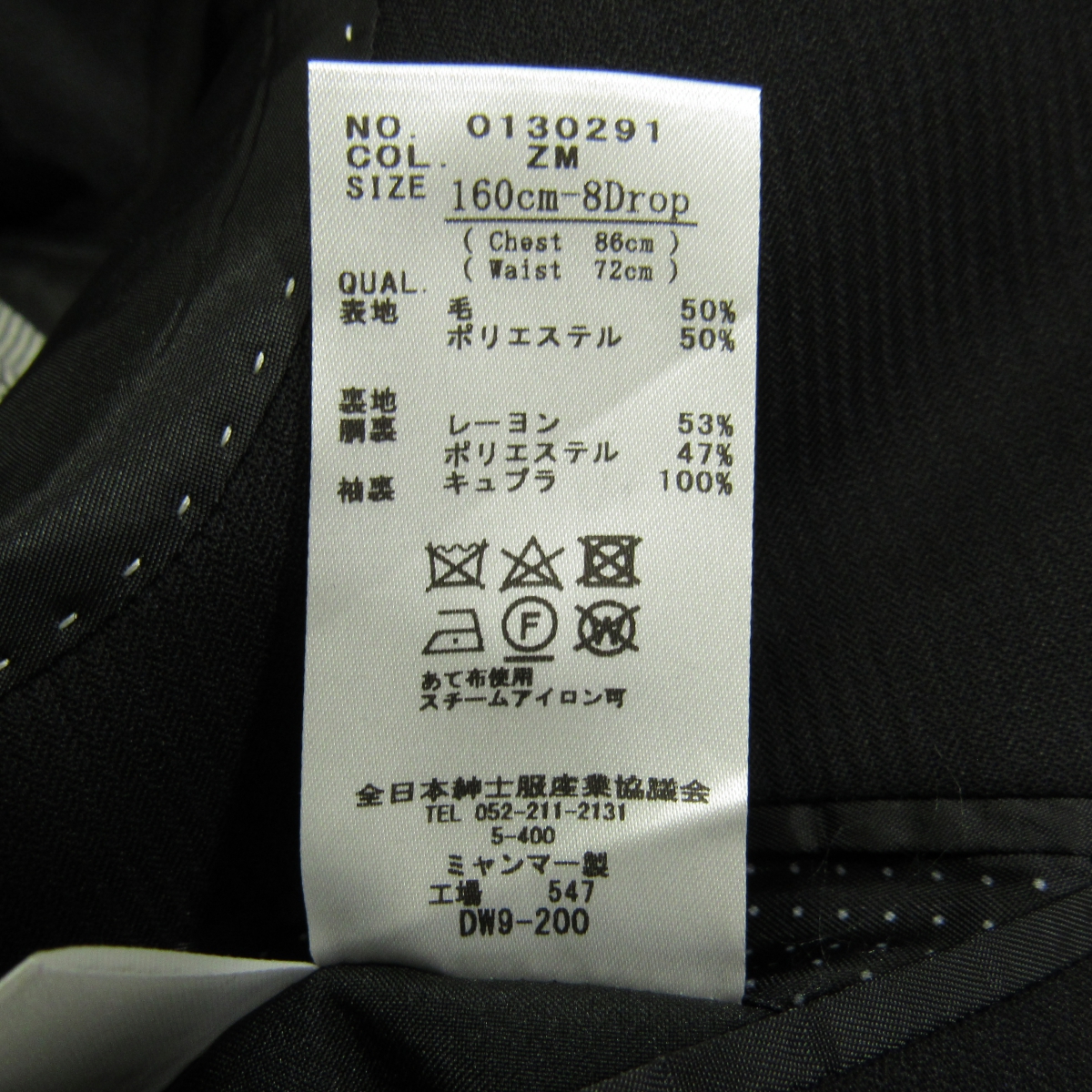 | 表記サイズ 【ジャケット】160cm-8Drop チェスト86cm ウエスト72cm YA3 【パンツ】160cm-8Drop ウエスト72cm ※パンツウエストの実寸は76cmでした。 実寸サイズ(cm) 【ジャケット】身幅/46.5 肩幅/41 着丈/67.5 袖丈/56.5 ラペル幅/6.5 ゆき丈/77 第1ボタン位置の胴幅/43 【パンツ】ウエスト/76(後ろ縫い代余り4cm) 股下/69.5(スソ内側折り返し部分9.5cm) わたり幅/27.5 スソ幅/17 総丈(側面のウエスト~スソ)/89.5 |
