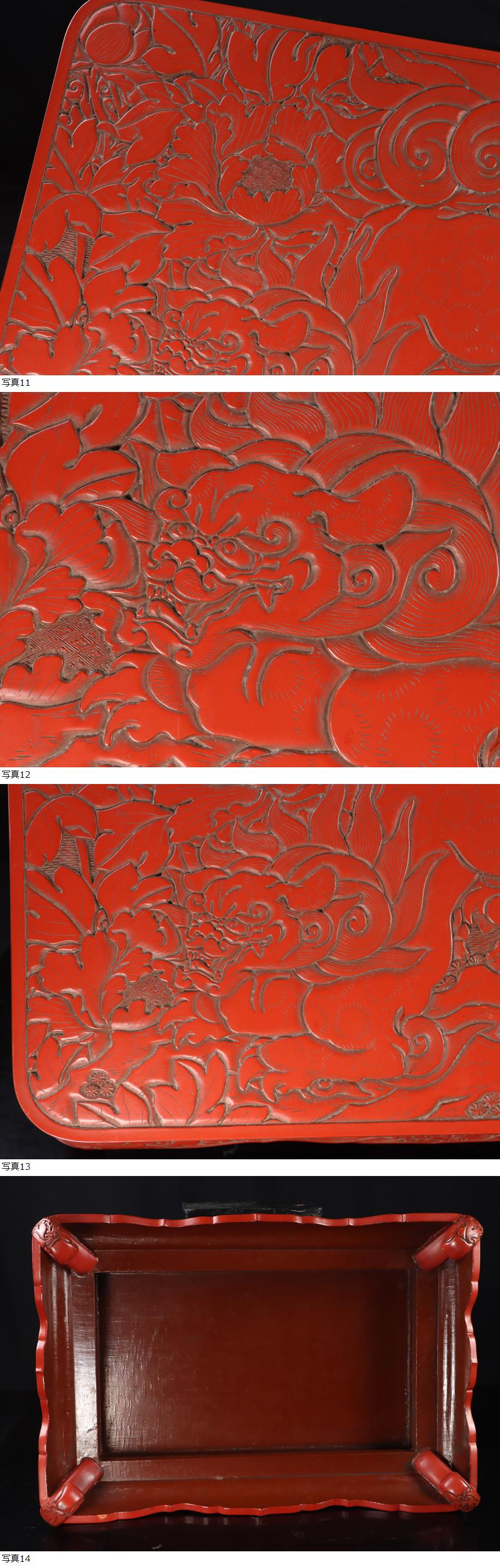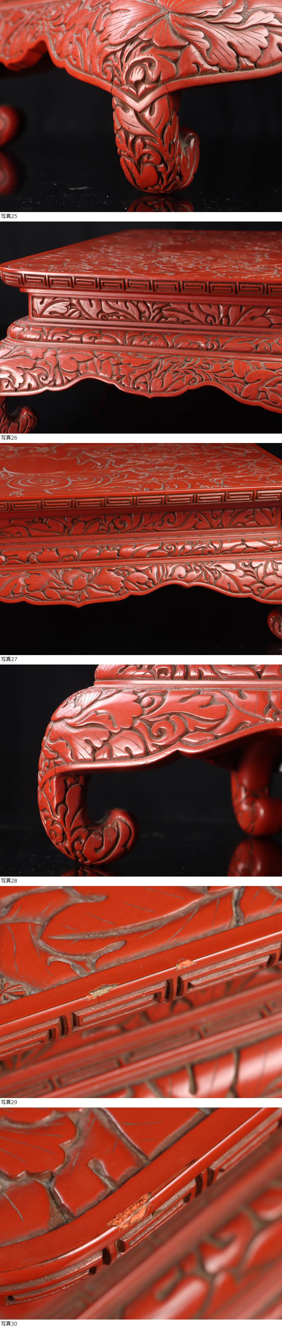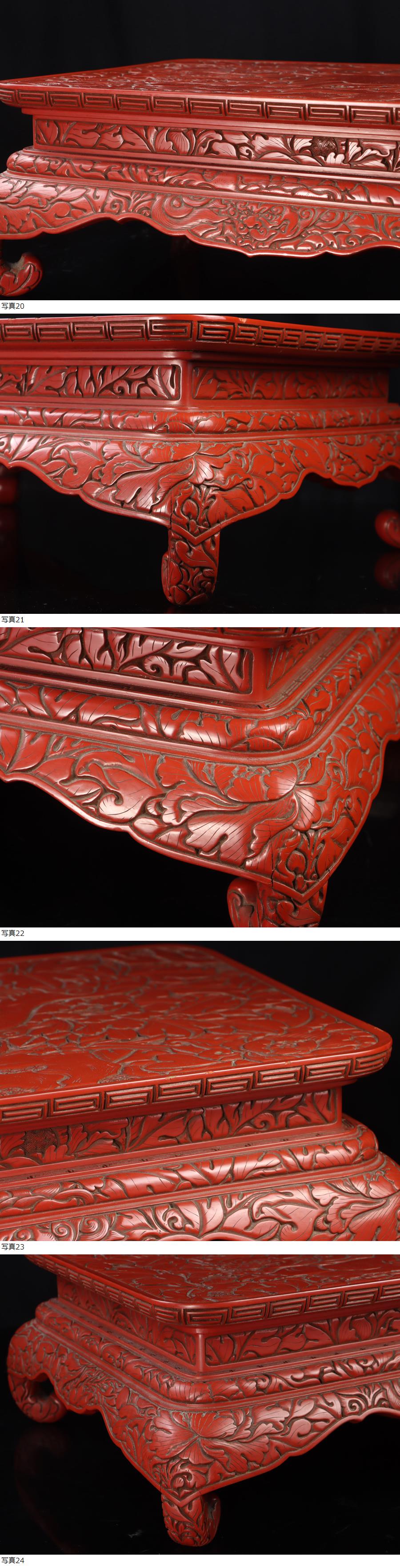 サイズ(約) 高さ 19㎝/横幅 57㎝/奥行 40㎝ 重量 4.06㎏ 付属品 - 名家旧蔵 蔵出うぶ荷 本物保証 時代古作堆朱花台 獅子花弦図 木製堆朱 出来上作 希少時代作品! 本物保証 状態、時代の汚れ、小さなかけ、若干の亀裂等ございます。 画像参考の上、入札の方お願いいたします! 大事にしていただける方の入札お待ちしております! |