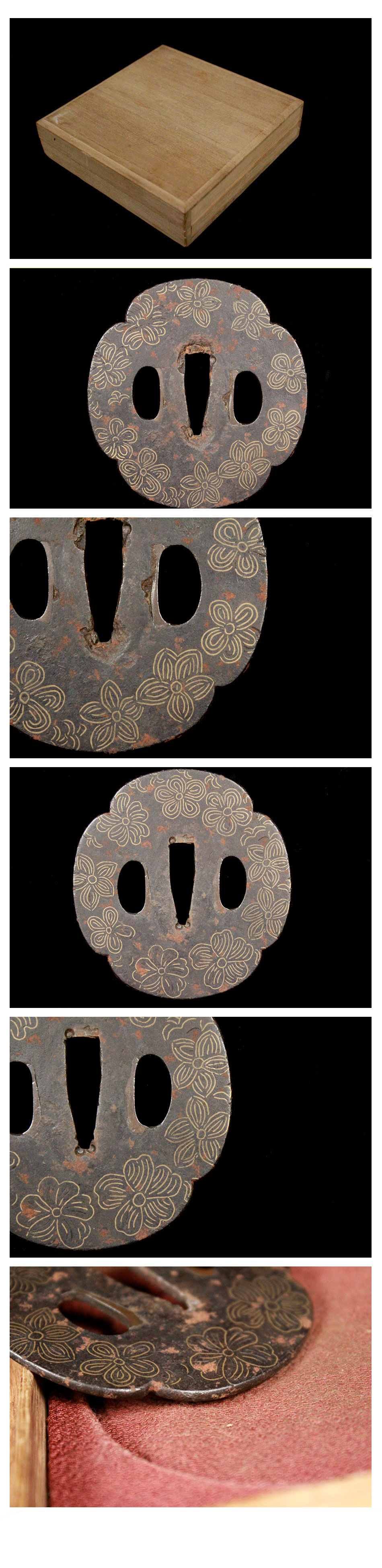 | 【喜楽】薄い花象嵌鍔!! 木箱 刀装具武具!! 112743 | - |