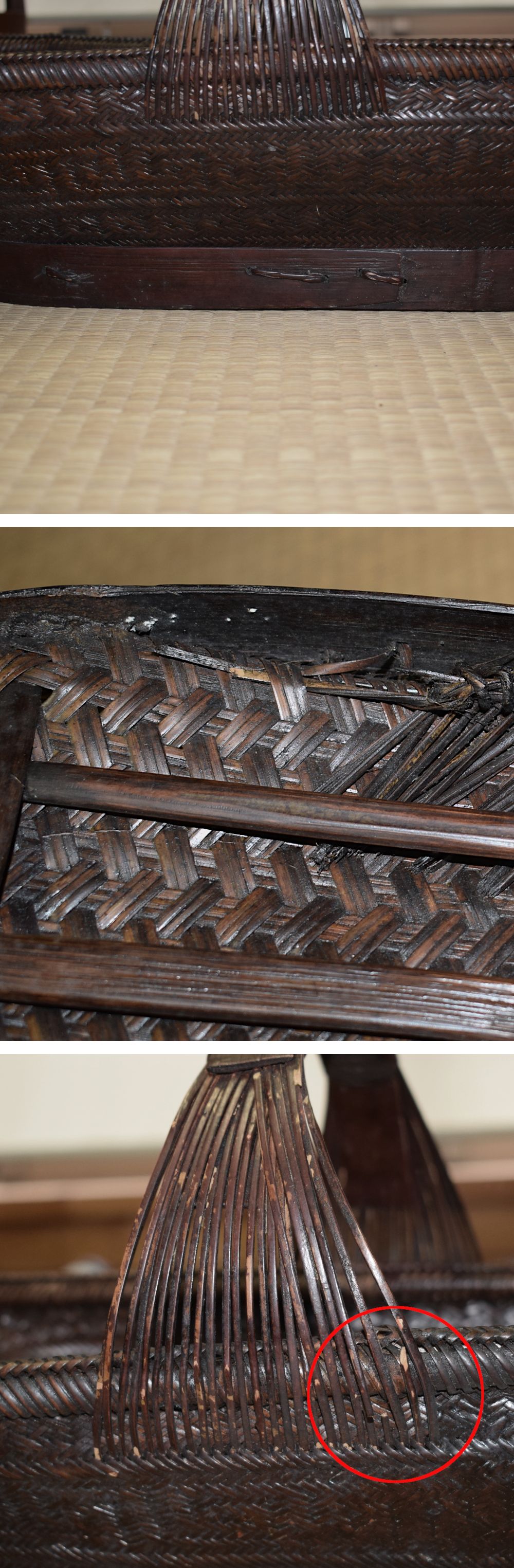 | 商品説明 | 【サイズ】 横幅 約 47cm 奥行 約 23cm 高さ 約 13cm 持ち手込み高さ 約 23cm 【材質】 竹製 |