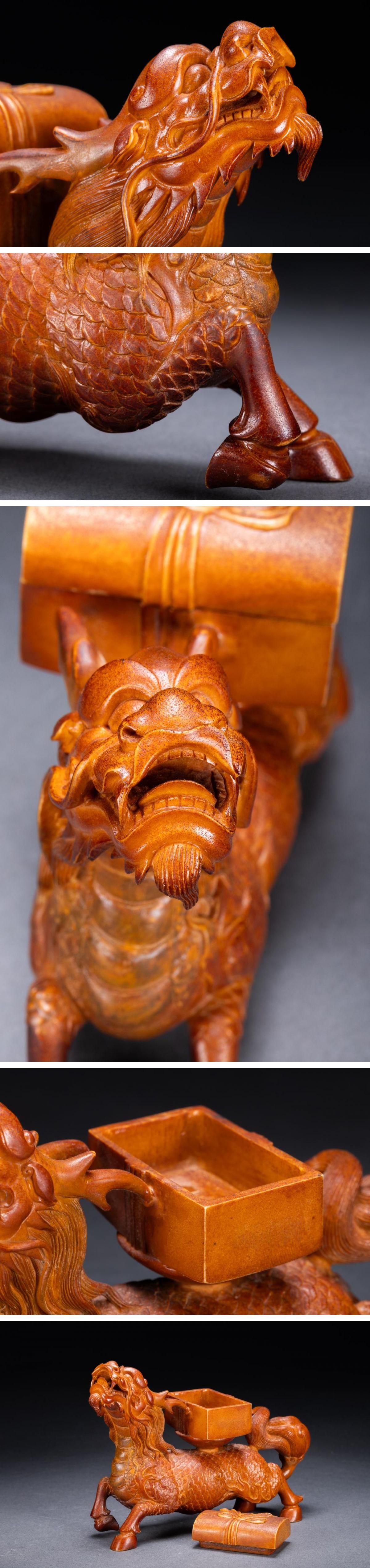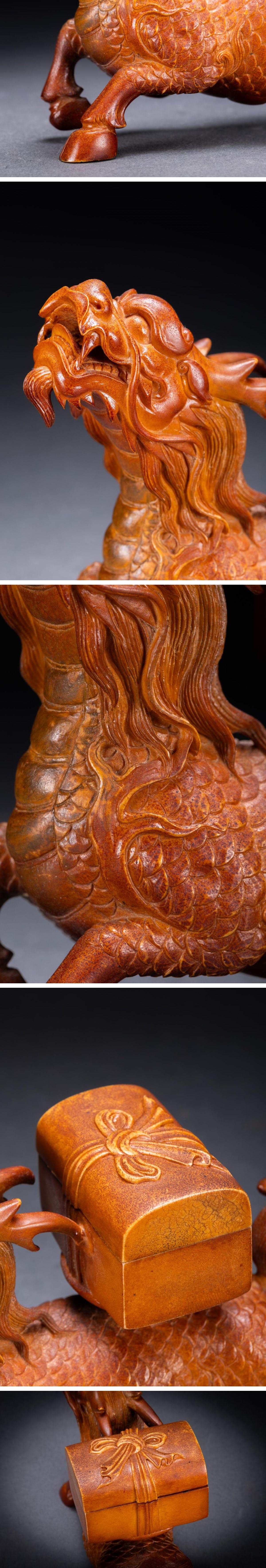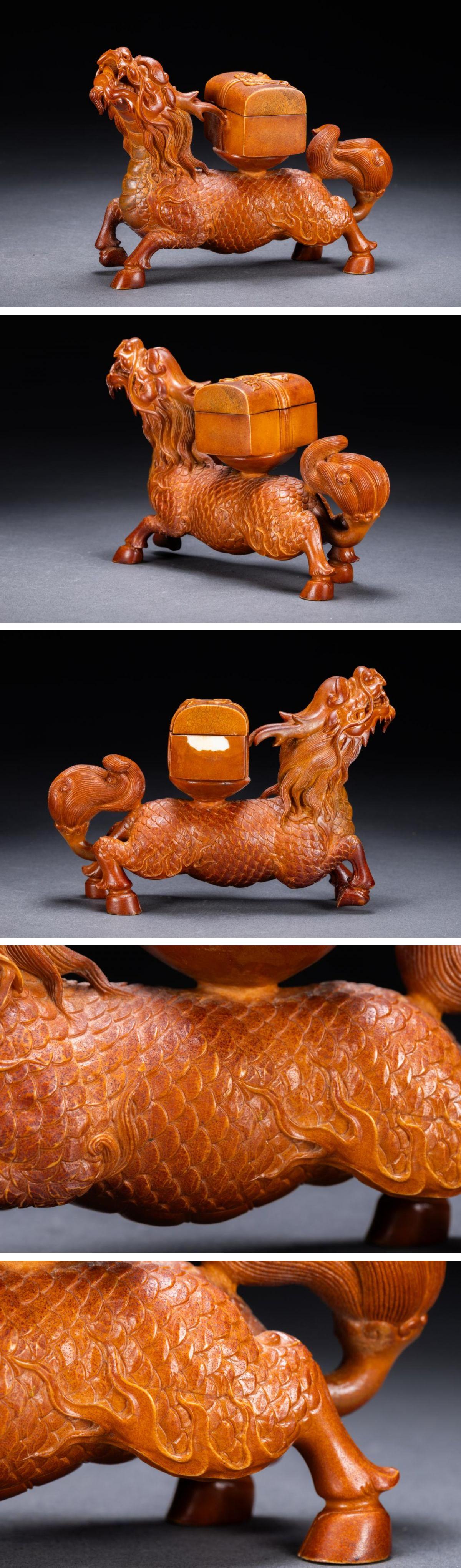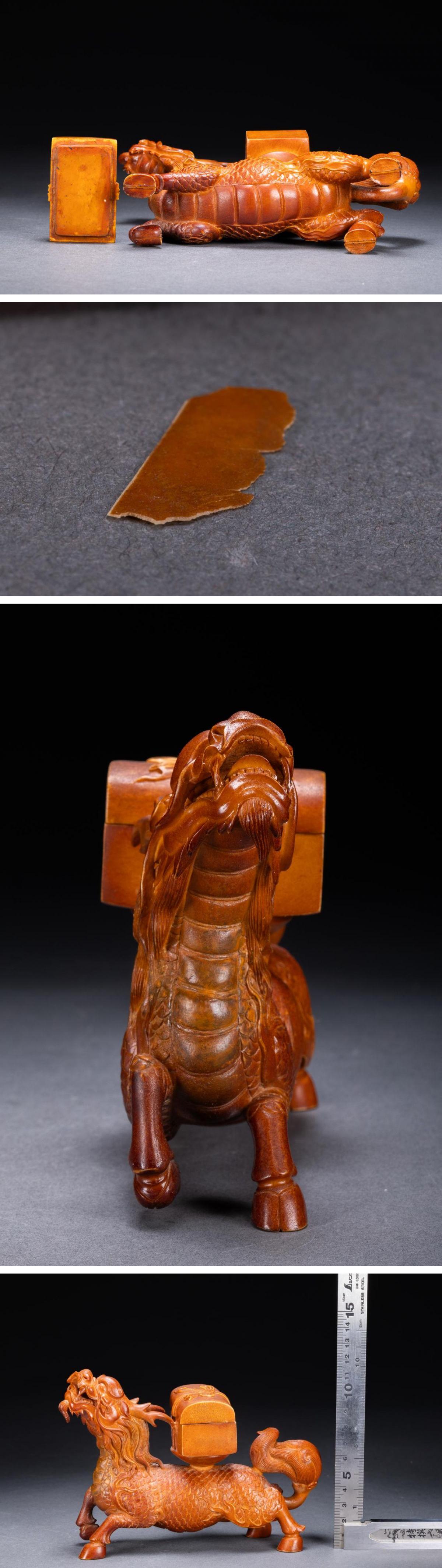 【雲錦】1円から 時代物 鹿角彫 麒麟送子文置物 時代物保証 材質保証 古美術 骨董品8L2-25S