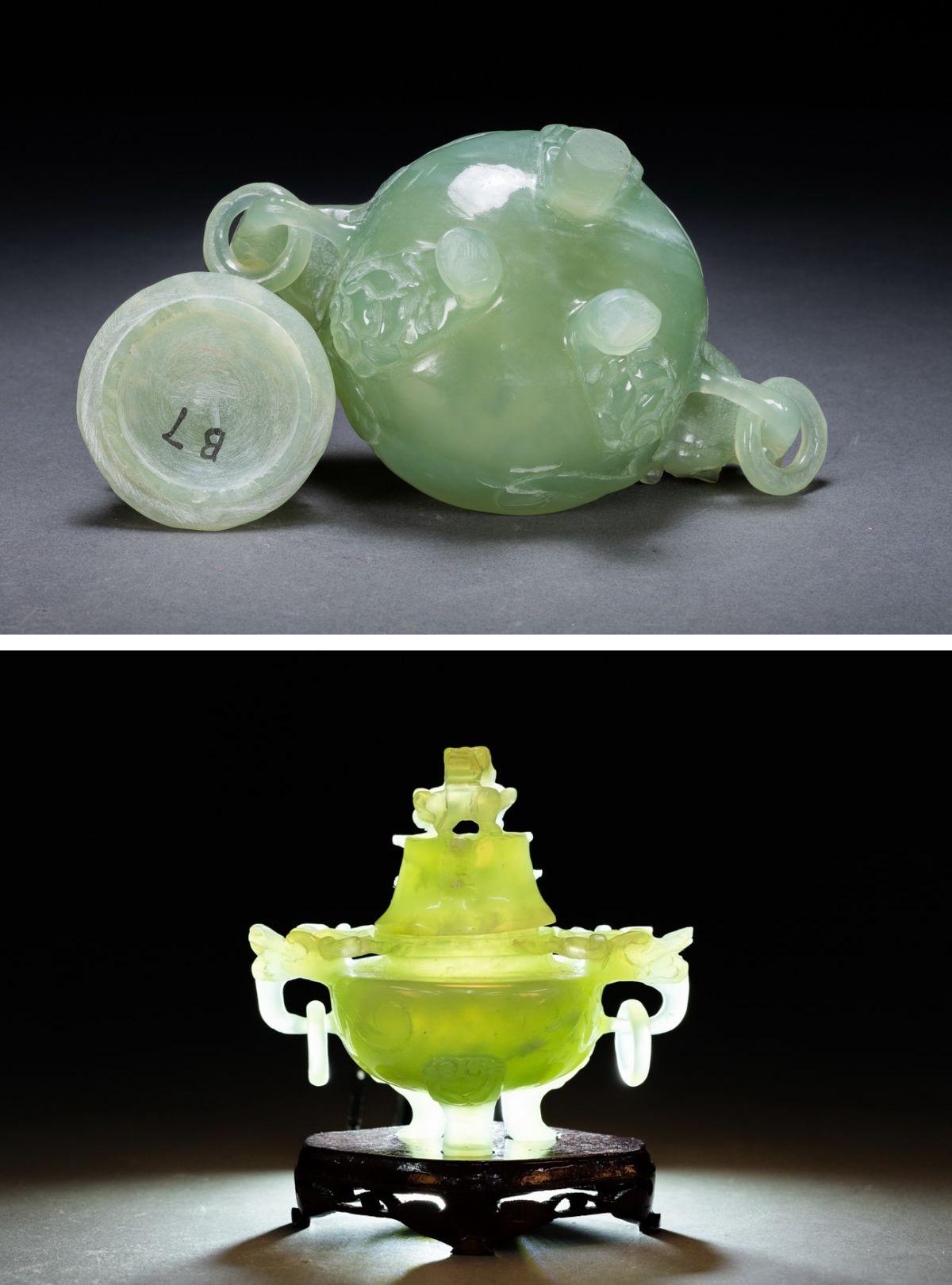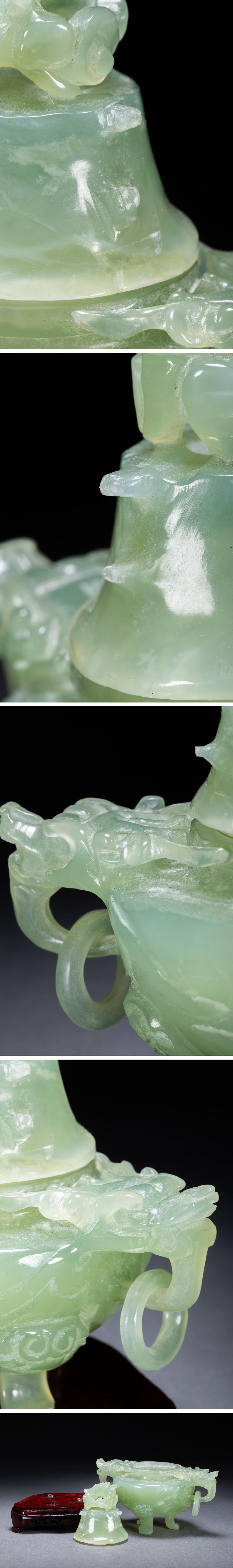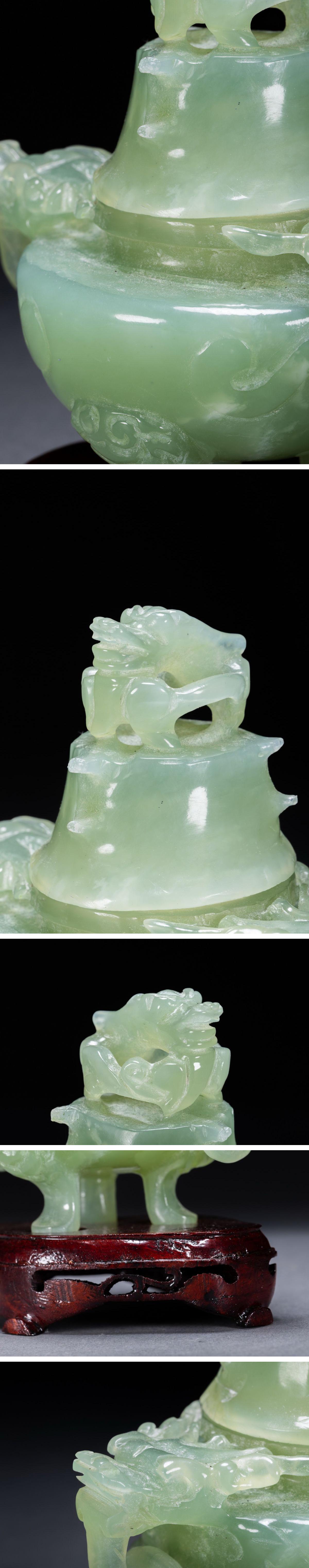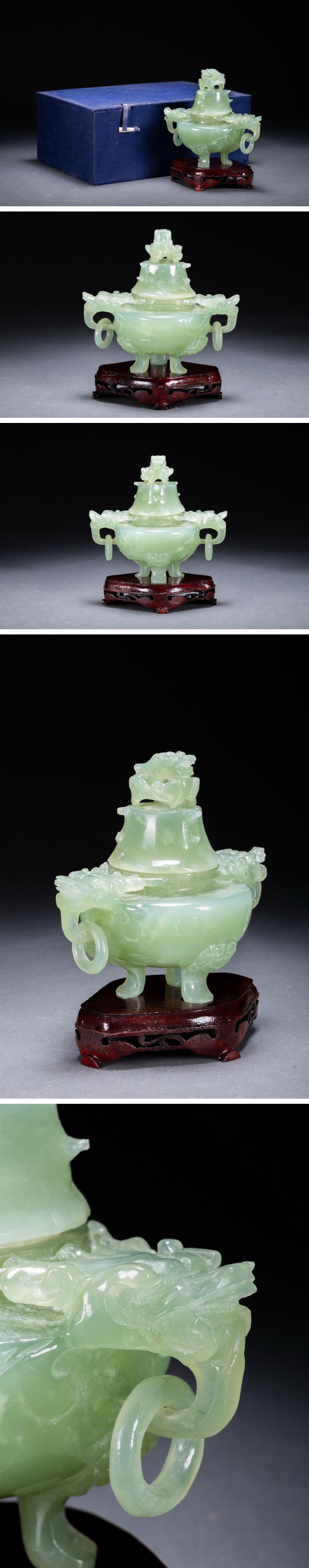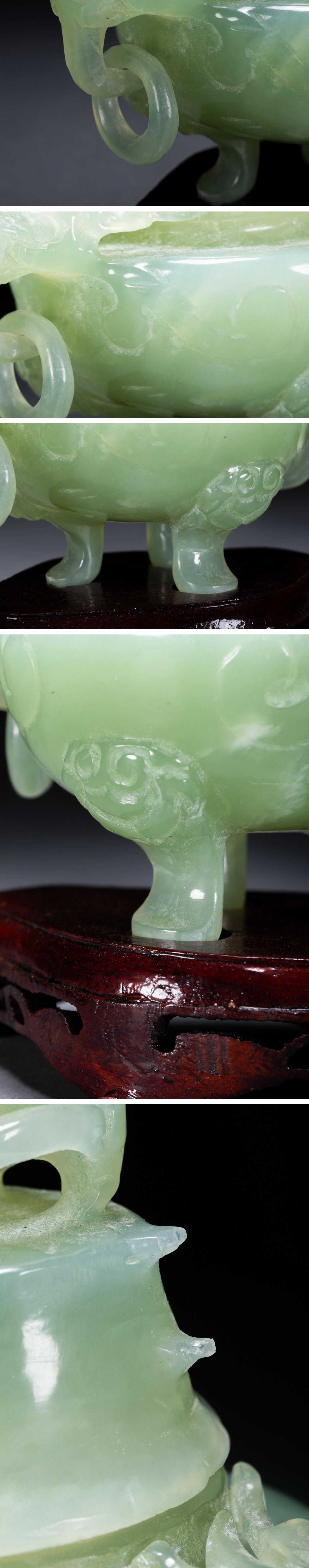 【雲錦】1円から 時代物 中国伝来 天然碧玉 双龍耳三足爐 中国古美術 材質保証 時代物保証 古美術 骨董品8L1-116S1
