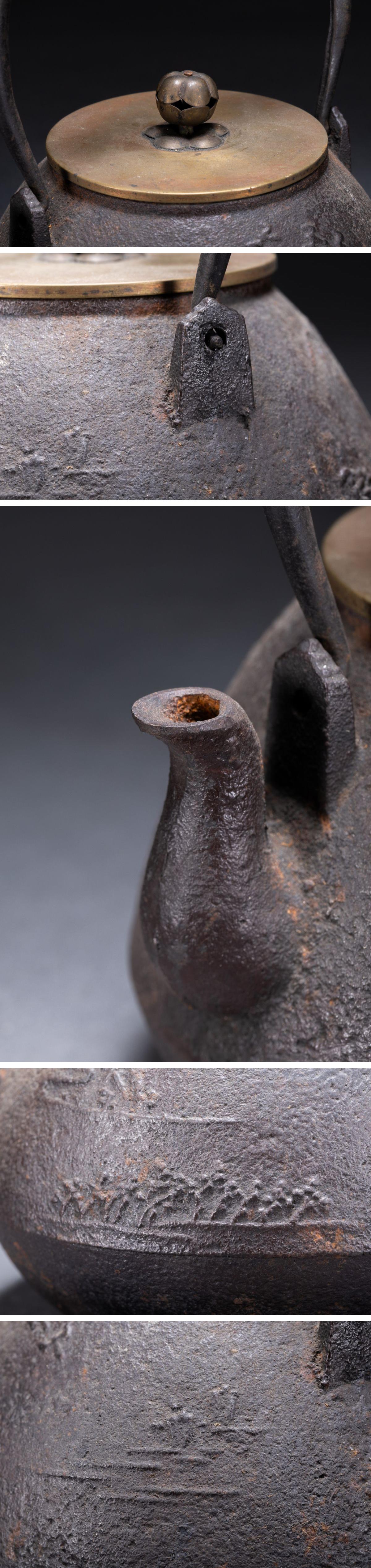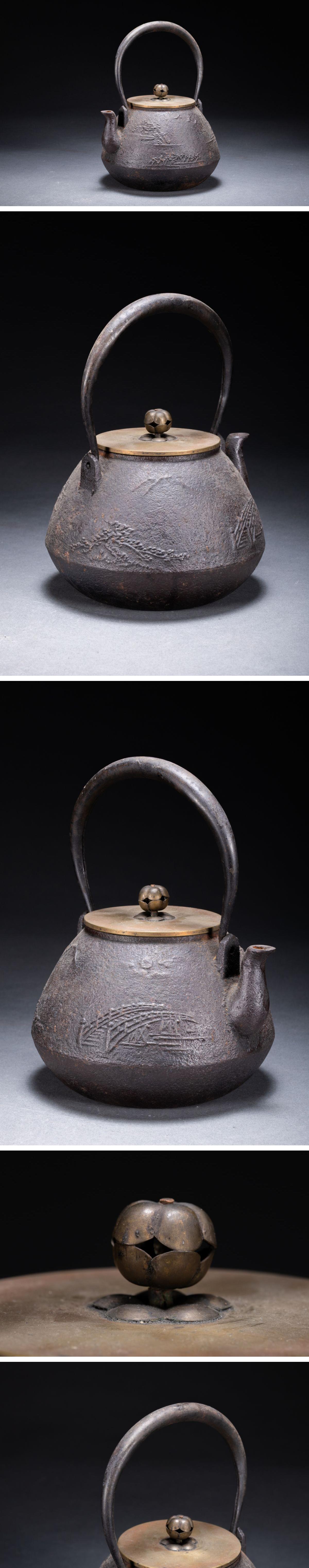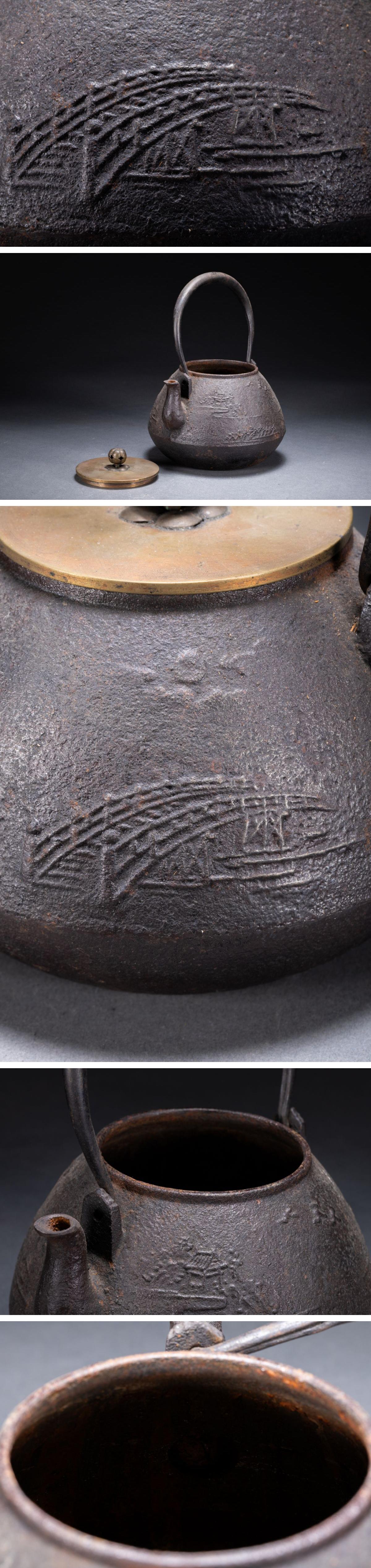 【雲錦】1円から 時代物 三越製 古鉄瓶 山水文鉄壺 古茶煎道具 古美術 骨董品8L1-119S1