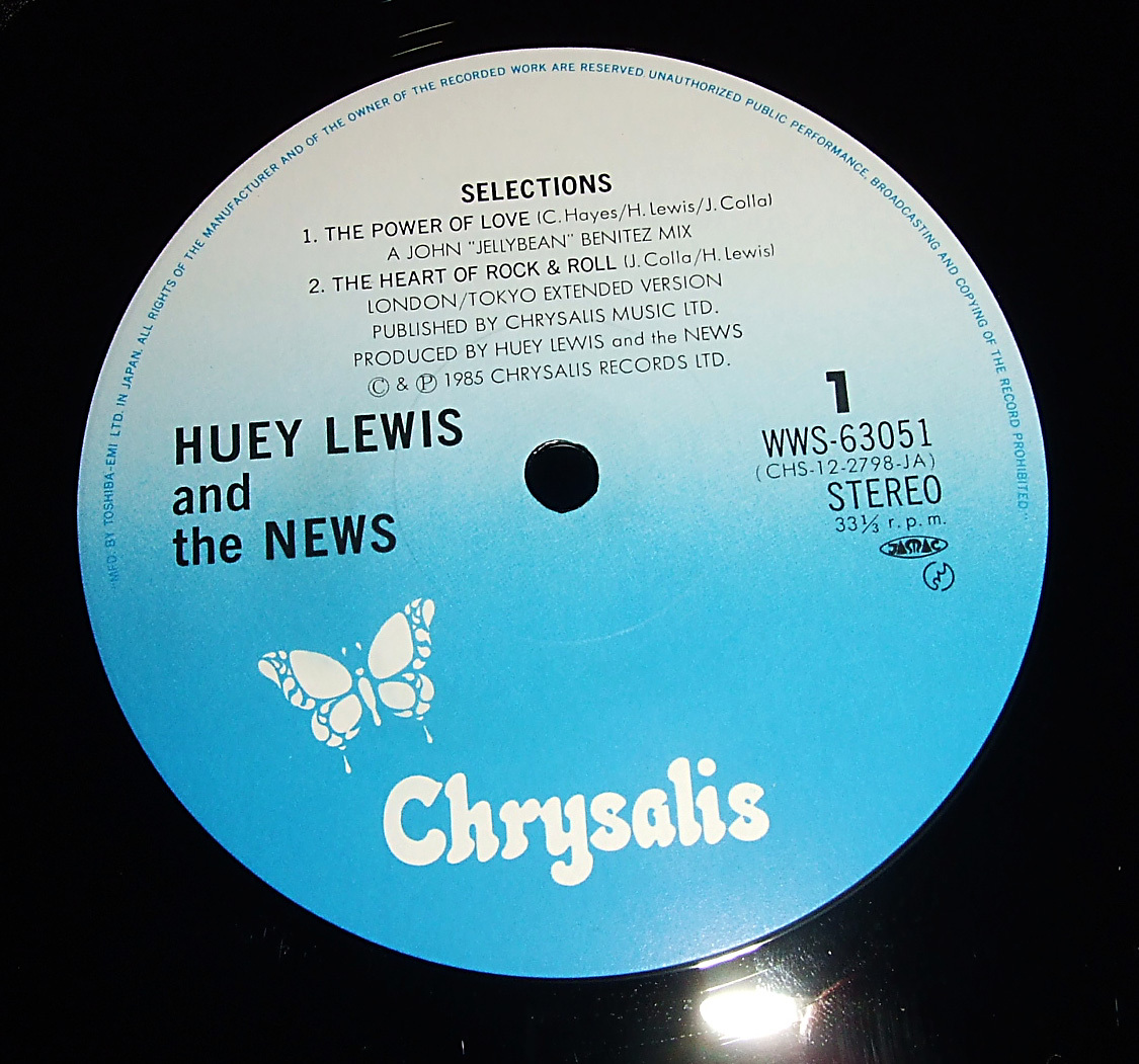 1985年に東芝EMI (Chrysalis)から発売されました、ヒューイ・ルイス&ザ・ニュースの12インチ・EP、「Selections 5track EP 」国内盤・レコードです。(WWS-63051)