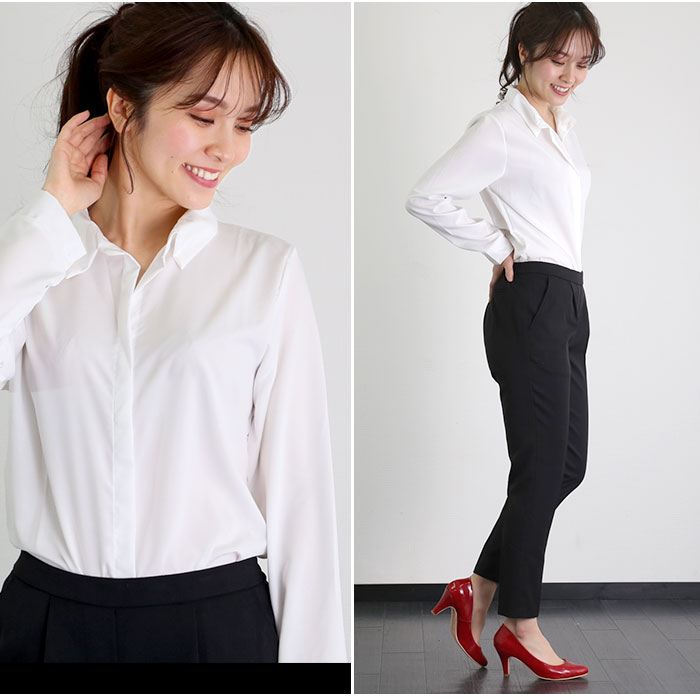 | 商品説明 | ・とろみ感が今っぽい!エレガントに着こなせるシャツブラウスが新登場。 ・女っぽ過ぎないシンプルなデザイン。適度に入ったドレープが、綺麗めスタイルにぴったり。 ・襟元はあえてボタンを外すスタイル。大きく開きすぎないので、鎖骨を綺麗に見せてくれる。 ・前あき部分は「比翼仕立て」に。ボタンが隠れることでよりすっきりとしたシルエットが完成。 |