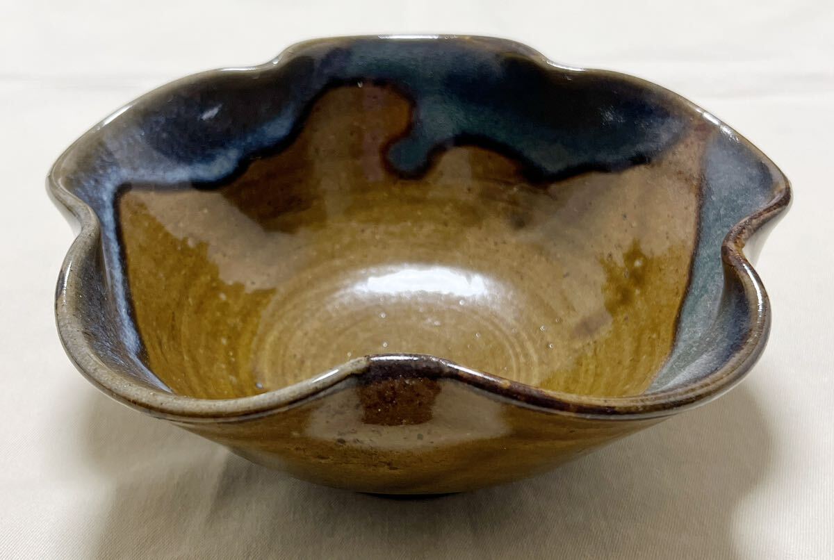 しっとりとしたマット調のマンガン釉を掛分けた作品。内側と外側は艶のある茶色い釉薬を使用し、趣のあるグラデ-ションをつけている。
