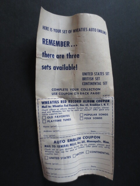 非常に古くて珍しい商品をご紹介させて頂きます。 1950年代に販売されていたグリルカーバッジになります。 形状は楕円のタイプと丸型のタイプがございます。(メーカーによって異なります) 楕円タイプのサイズは10cm×6cmになります。 丸型タイプのサイズは直径8~9cmになります。 サイズはメーカーによって若干異なります。 バッジは金属板がプレスされて製造されたバッジになります。厚さは5~10mm程度です。 (メーカーによって若干異なります)。 各社のマークが立体的に製作されており、上部に2つの小さな穴が空けられております。 ここにボルトを通して固定したり、ワイヤーを通してグリルに固定して使用したと聞いております。 バッジの下部には、「ENGLAND」、「FRANCE」、「ITALY」などの国名や車名が書かれております。 (記載のないタイプもございます) 当時の有名な自動車メーカー31社のカーバッジが発売されていたようです。 当時のパッケージの写真を3枚目に紹介させて頂きました。 この厚紙の袋に入って販売されていたと聞いております。 (残念ながら、写真3枚目のパッケージは今回の出品物には含みません。) 同様に、1950年当時の説明資料の写真も紹介させて頂きました。 こちらは、両面カラーコピーを行い、商品と一緒に発送させて頂きます。 今から50年以上も昔のバッジなのですが、油紙に包まれて保存状態が良かったのか、目立つような錆びや 割れなど無く、その年代を考えると抜群に良いコンディションだと思います。 バッジによっては、ピカピカの商品もございます。 (中には、錆の多いものもございます。個体差がありますので、必ず添付写真にて良くご確認下さい。) また、このバッジは1950年当時の各社のマークを知ることが出来ます。 現在とかなり違ったマークのメーカーもあります。 そのような自動車の歴史に触れることができることも、このバッジの特徴かも知れません。 今回、特別に数種類を入手することができました。 どれも1点限りの商品ばかりですので、お気に入りのメーカーがある場合はお早めにどうぞ。 ※この商品の他にも珍しい英国オートモビリアグッズなどの商品を多数出品しております。 よろしければ、その他の商品も是非ご覧下さい。