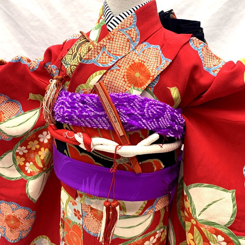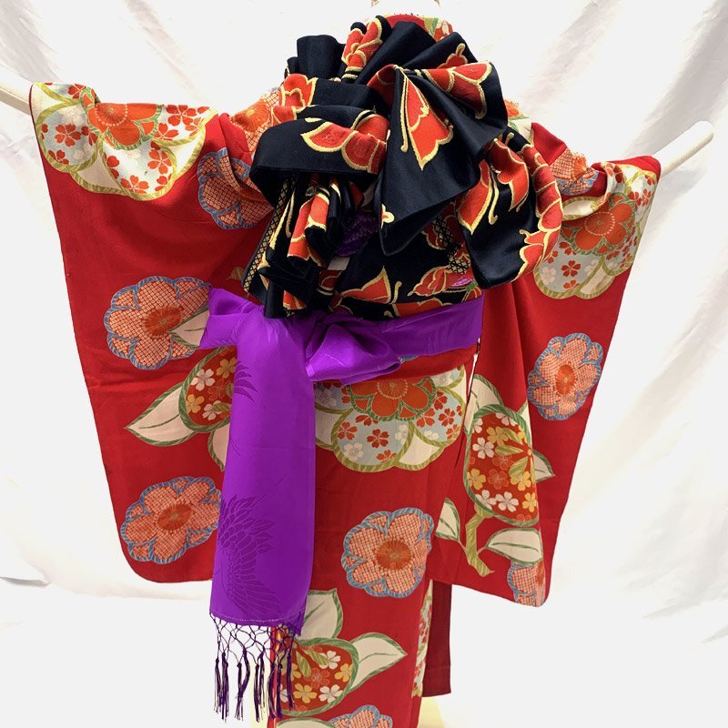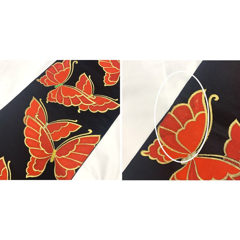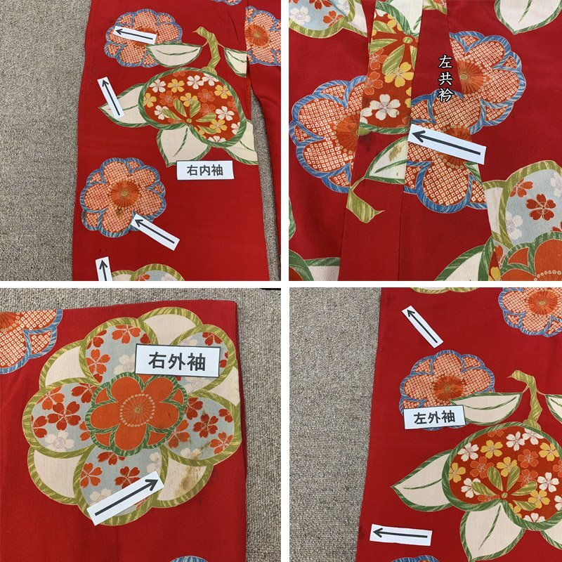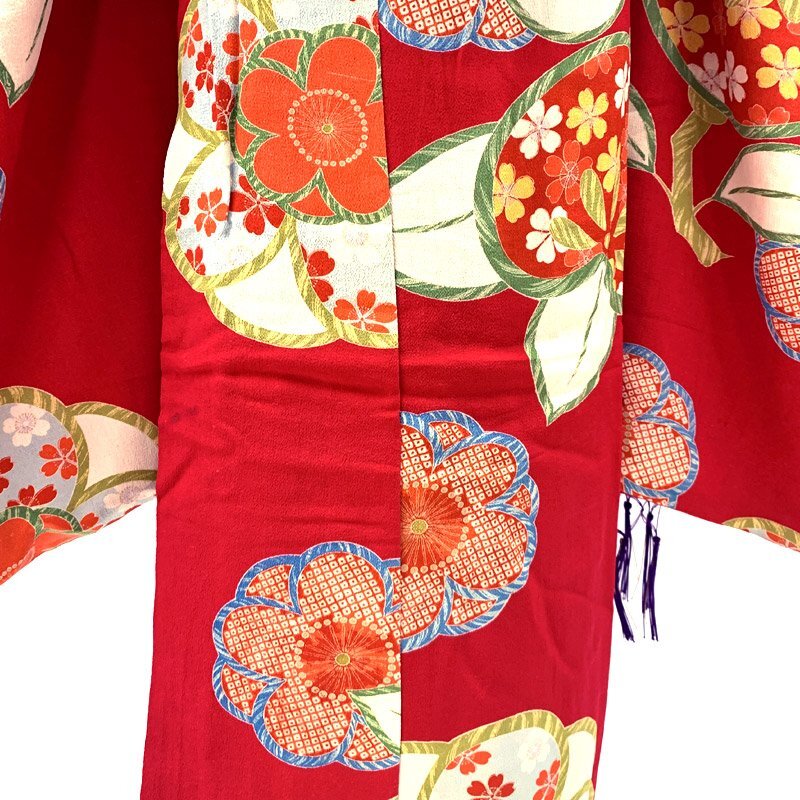 | ■七五三 七歳 十歳 アンティーク着物&袋帯 橘■状態良好 (No.gd) 大ぶりの橘の中には色鮮やかに染められた小花文が可愛らしい7歳七五三のアンティーク着物と袋帯のセットです(その他の小物はセットに含まれません)。 身丈が長いのでそのままハーフ成人式に、袴と合わせて小学校の卒業式にもご利用いただけます。体型によっては十三参りまでご利用いただけます。 画像のお小物類(帯揚げ、帯締め、しごき、筥迫、末広)は別途9000円です。 (着物)腰上げあとがございます。右内袖、左共衿、右外袖、左外袖にある様なシミが他にもございます。 (長襦袢)こちらには長襦袢が付属いたしません。 (帯)画像の様のような薄いシミや擦れがございますが、目立ちません。 【素材】(着物)正絹、(帯)正絹 【色】赤/群青色 *モニターによって色味は実際と異なる場合がございます。 【サイズ】(着物) 裄:54cm、肩上げ:2.5cm、袖幅:30cm、袖丈:68cm、丈(肩から):148cm、腰上げ:0cm、前幅:20.5cm、後幅:26.5cm (帯) 幅:26.5cm、長さ:430cm *素人採寸のため、多少の誤差はご容赦ください。 アンティーク着物で古い物ですので、それなりのシミや汚れ、ほつれなどダメージ等あるかと思います。現在出回っているアンティーク着物はシミやアクなどのダメージや手直しなど難がある事の方が多いです。多少の目立たないシミやアクに関しては記載をしておりませんので、ご了承ください。新品同様の綺麗さをご希望の方、少しのシミやアク、ほつれなどアンティークに御理解頂けない方のご購入はお控えいただきますよう、お願いします。 | |