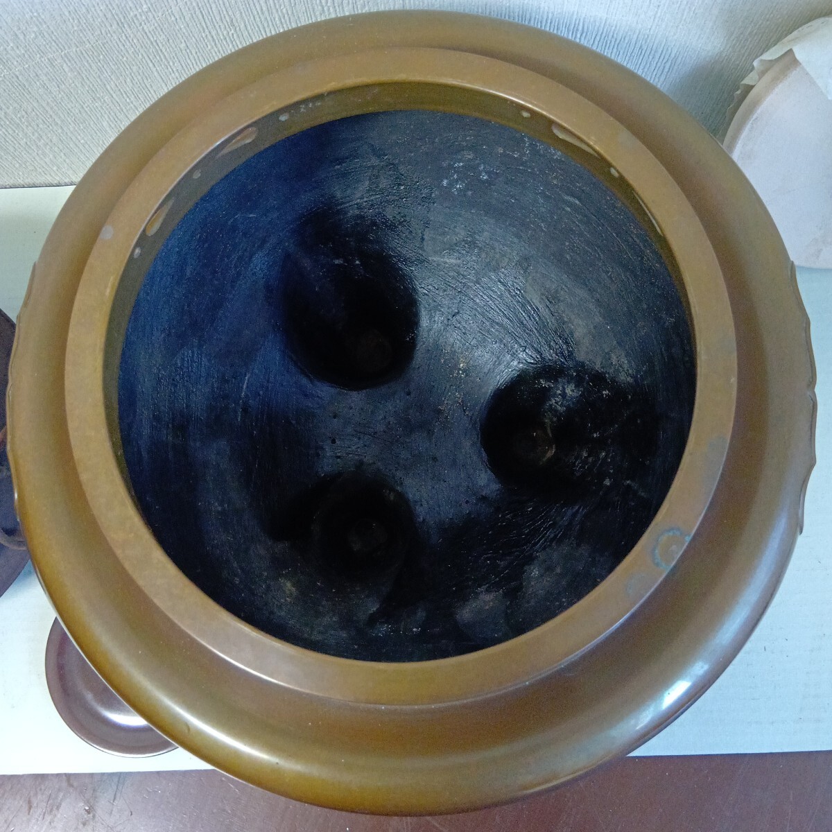 茶釜 唐銅 上部位鉄製 下唐金真鍮製 穴無し 美品 保管品 高さ約37cm 状態良いです、 ご安心して下さい 良く画像を御覧頂き入札をお考え下さい。