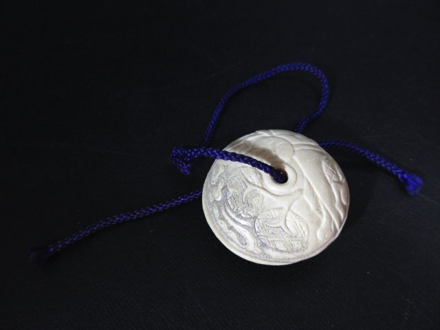 XD891△ アンティーク / 中国美術 / 細密彫刻 / 饅頭根付 / 直径4cm / ひも付き / 白材 歯 牙 角 / 伝統品